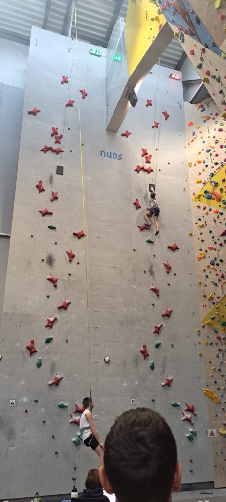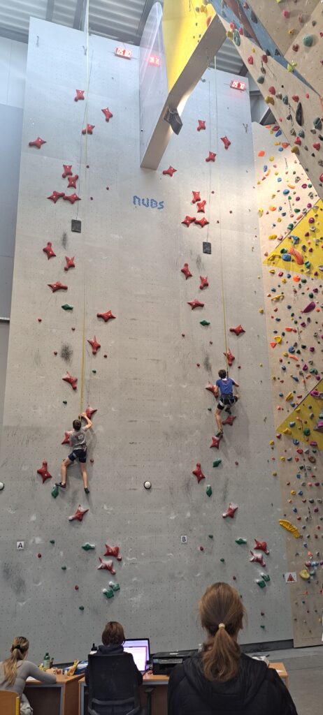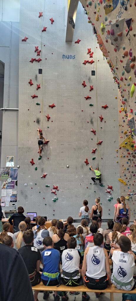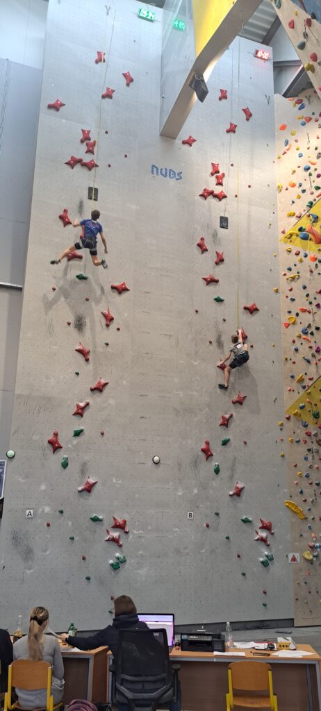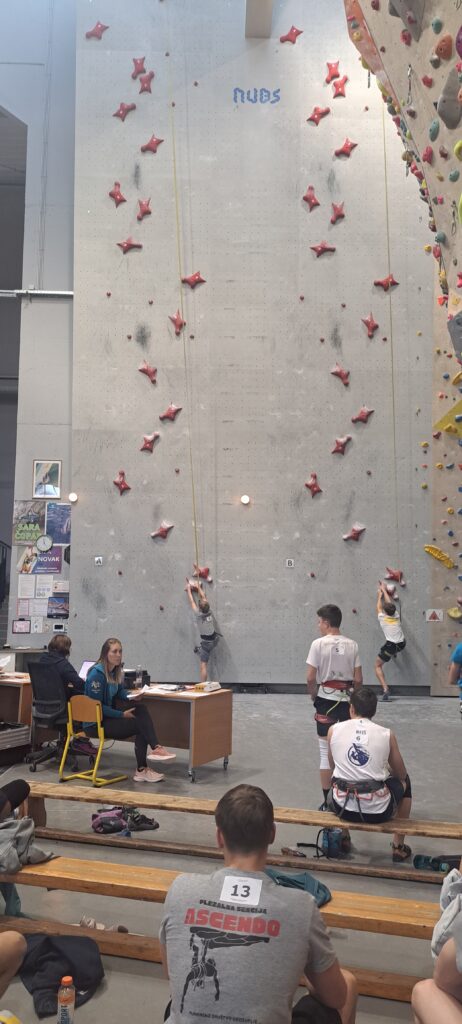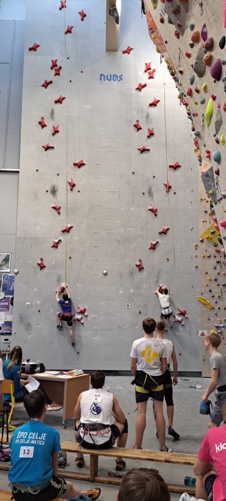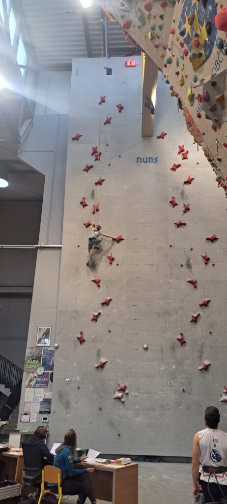 Starejši dečki pa so tekmovali na standardni, 15m visoki hitrostni progi, samo po rdečih oprimkih.