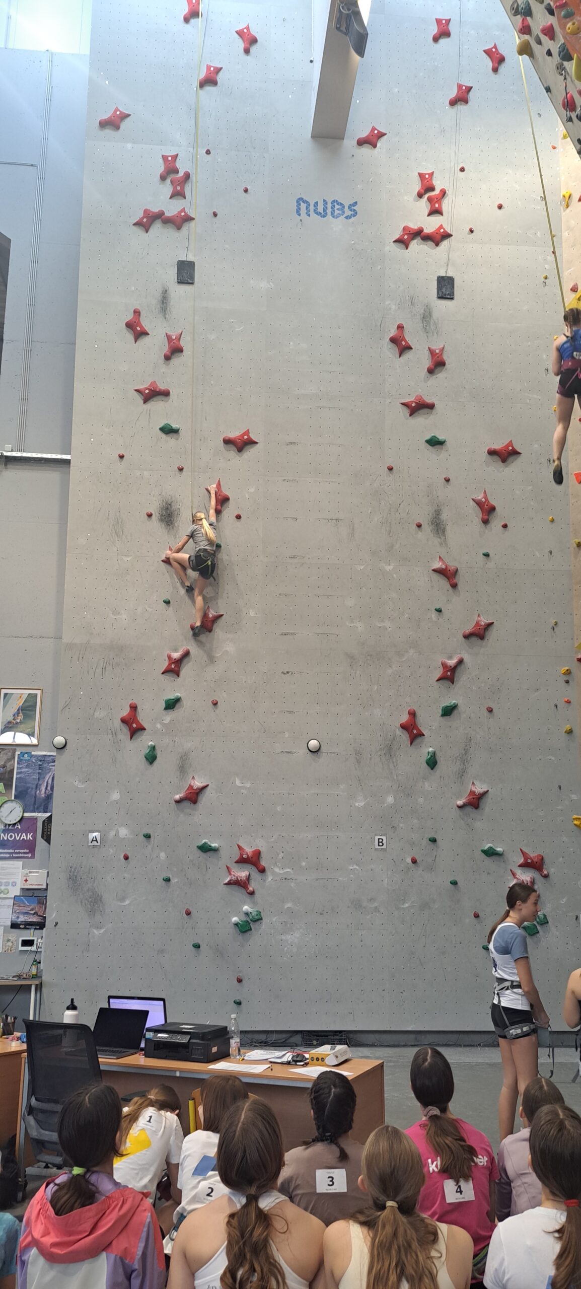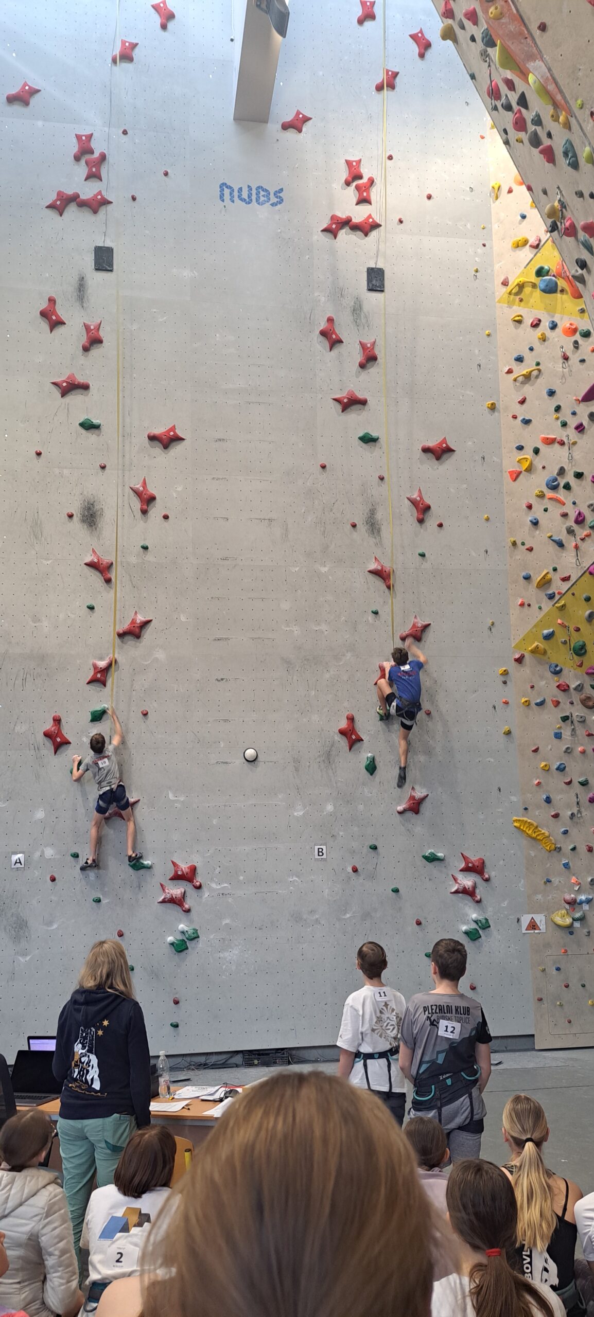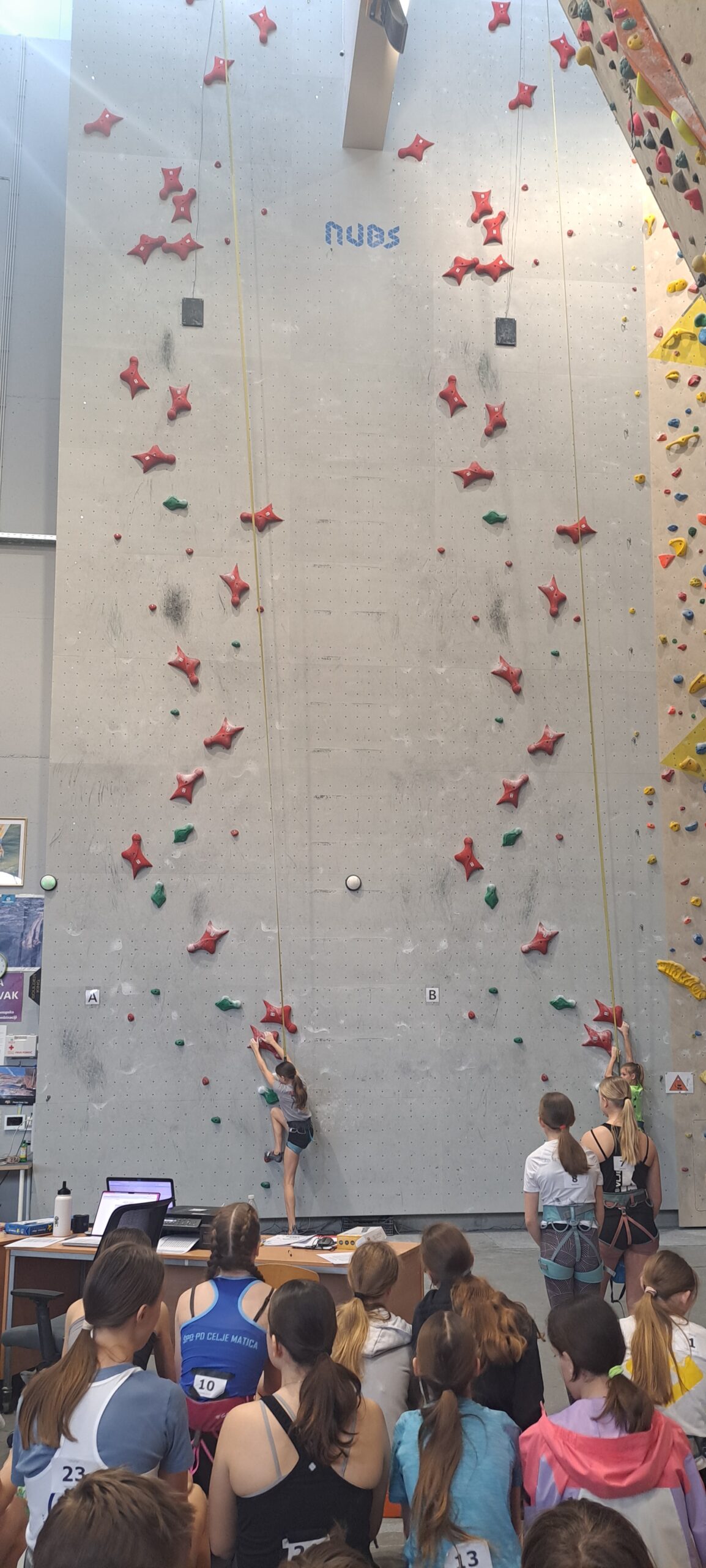 Starejši dečki pa so tekmovali na standardni, 15m visoki hitrostni progi, samo po rdečih oprimkih.