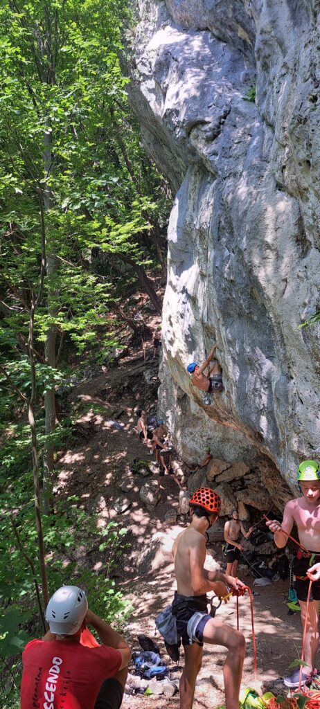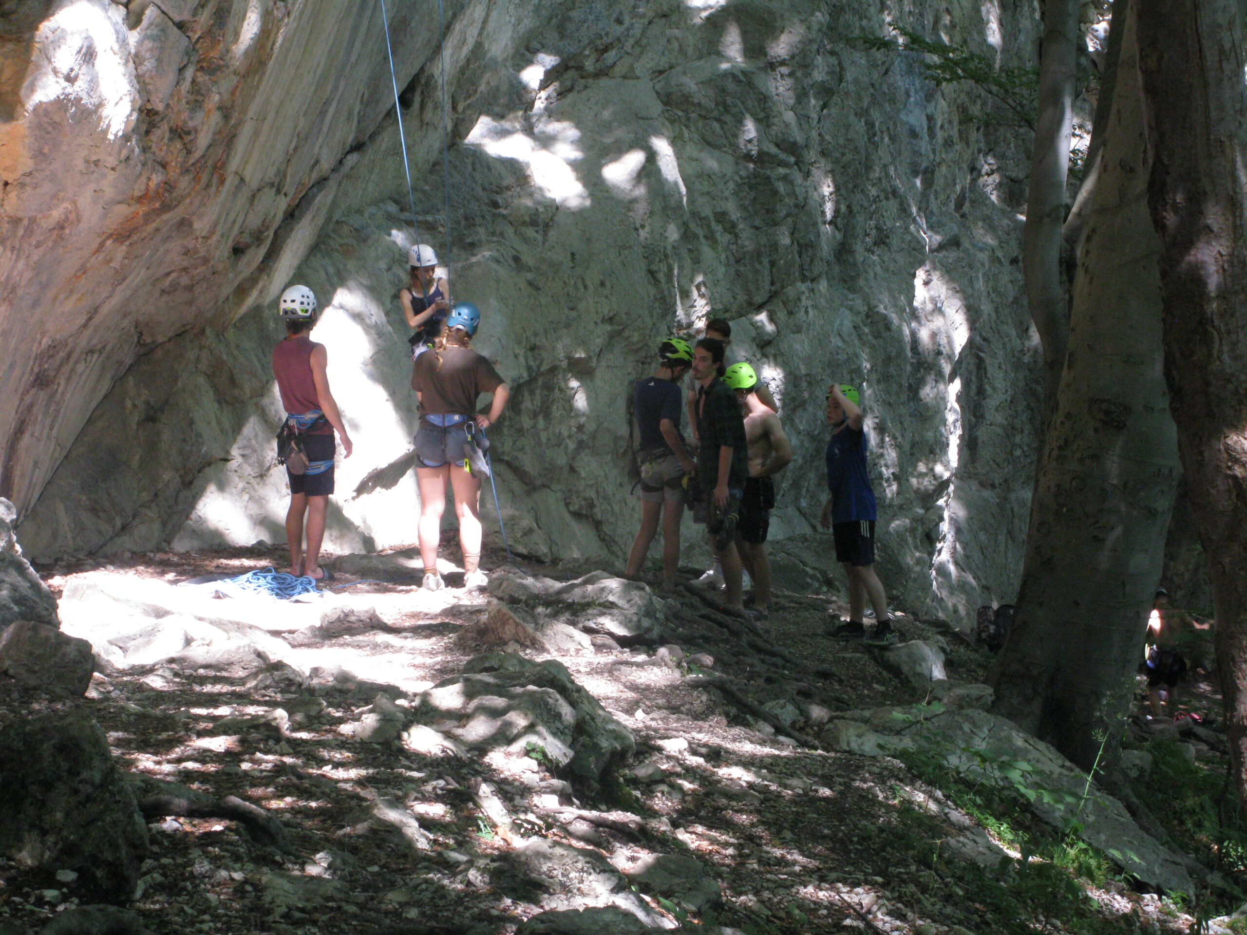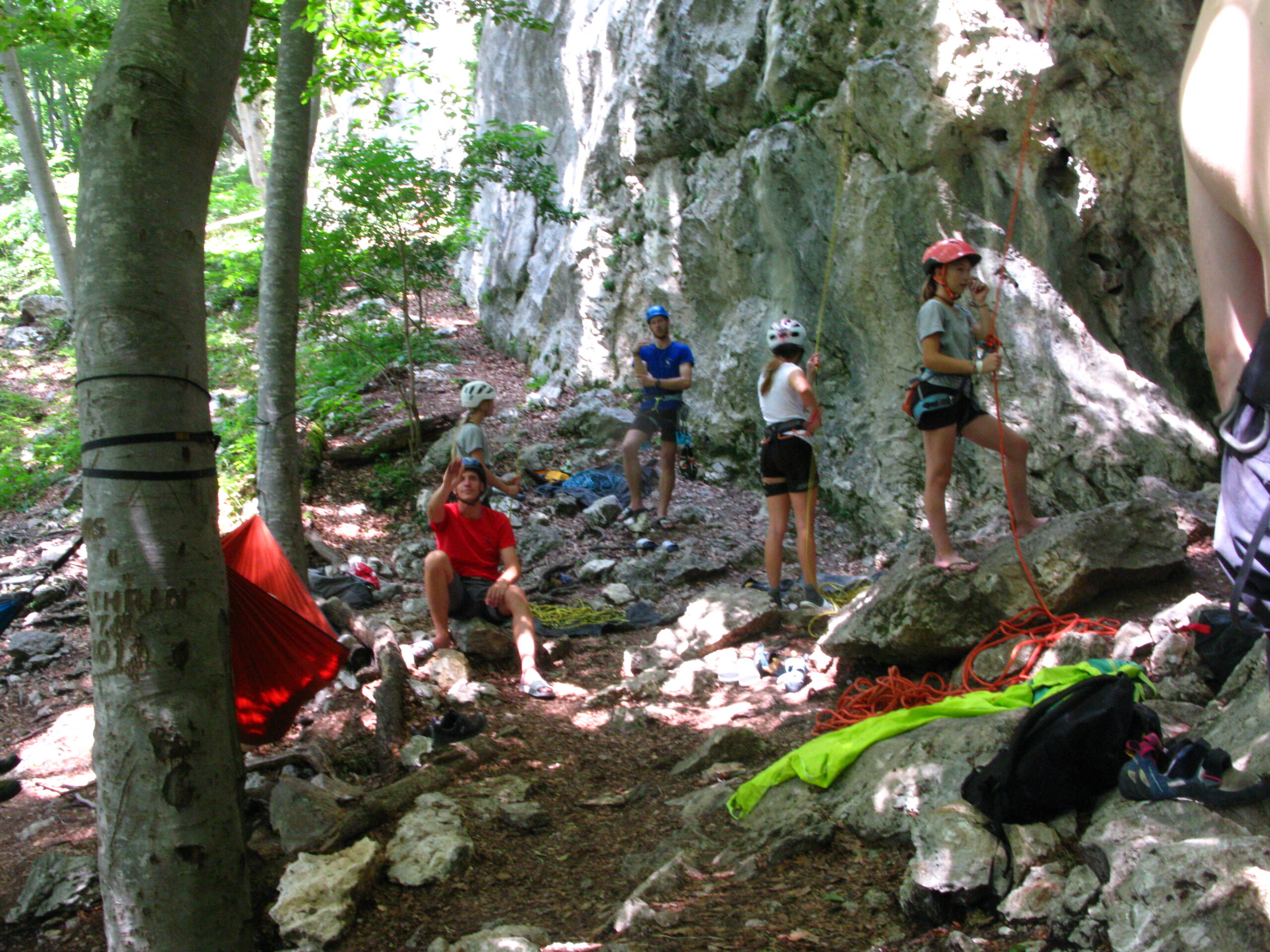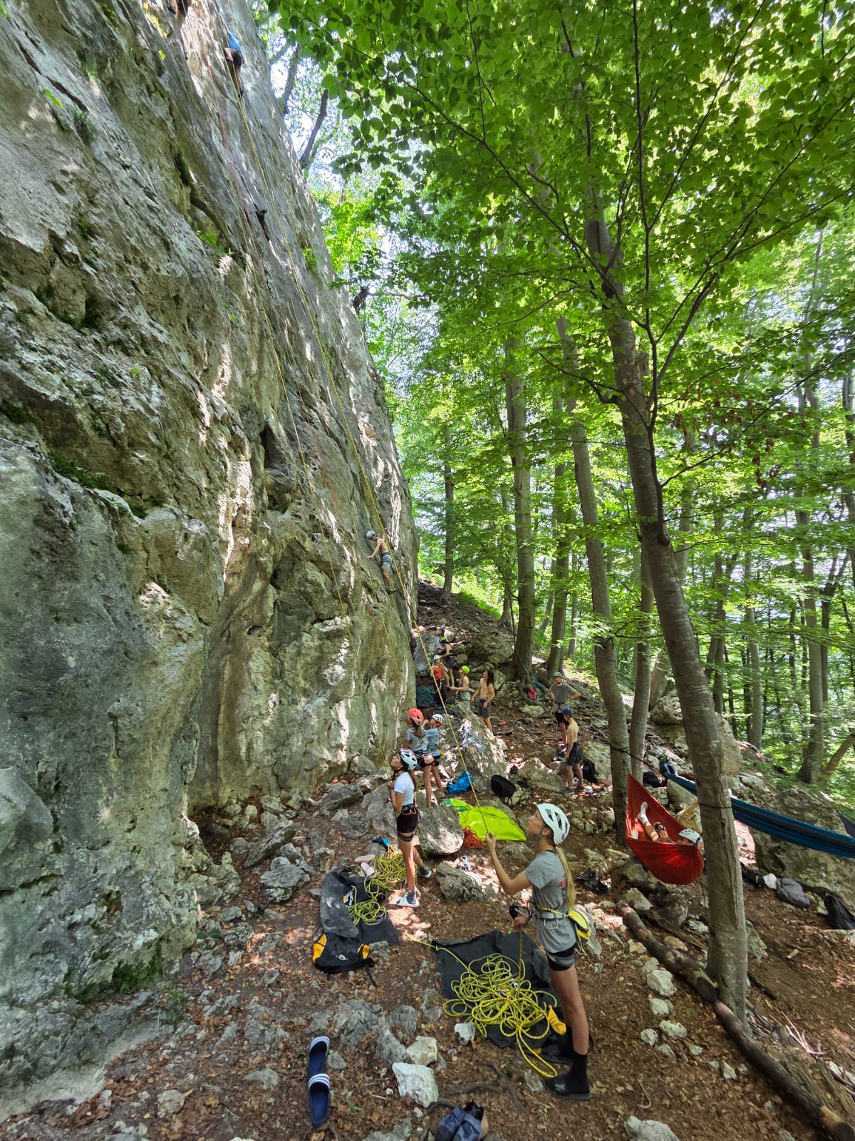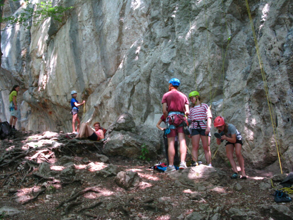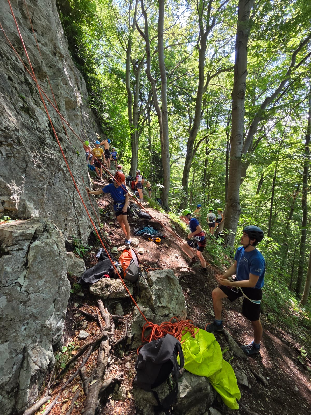 Tečajniki so ponovili manevre prevezovanja in izpenjanja kompletov ter preplezali veliko smeri v skali, pod bujnim očesom glavnega trenerja Simona. Za dodatek pa so videli tudi manevra vzpona in spusta po vrvi.