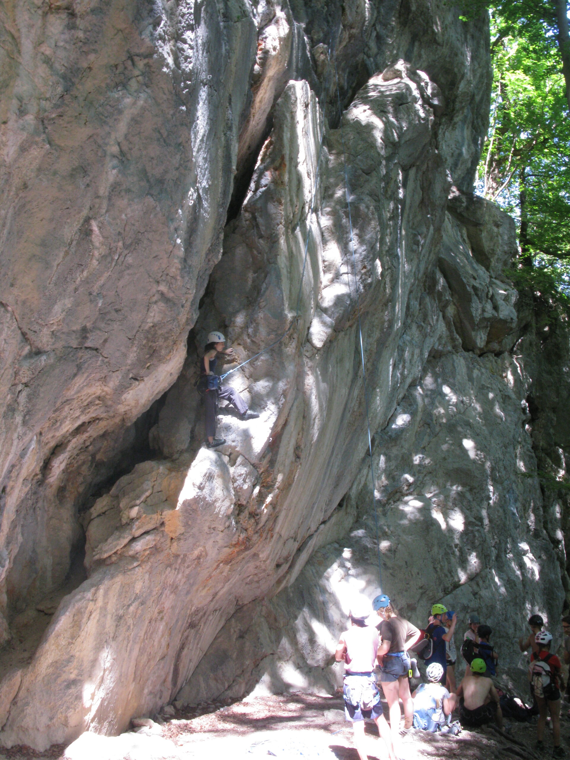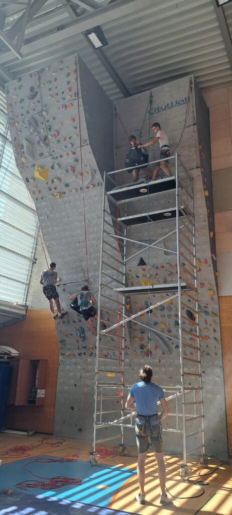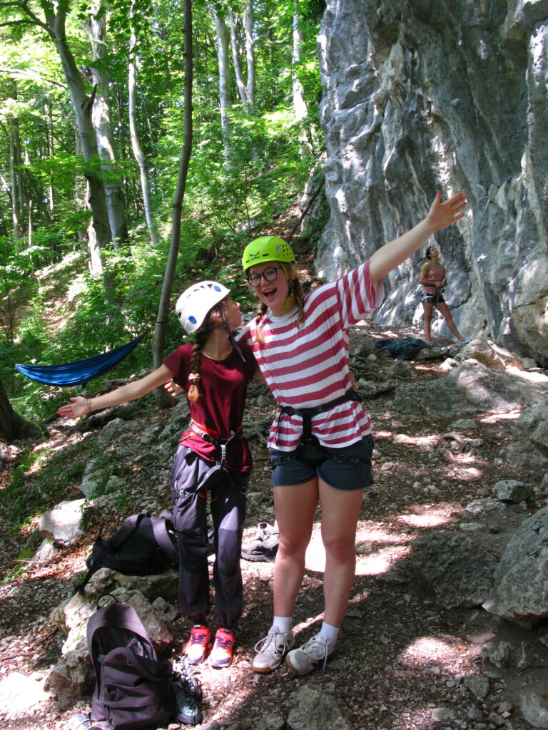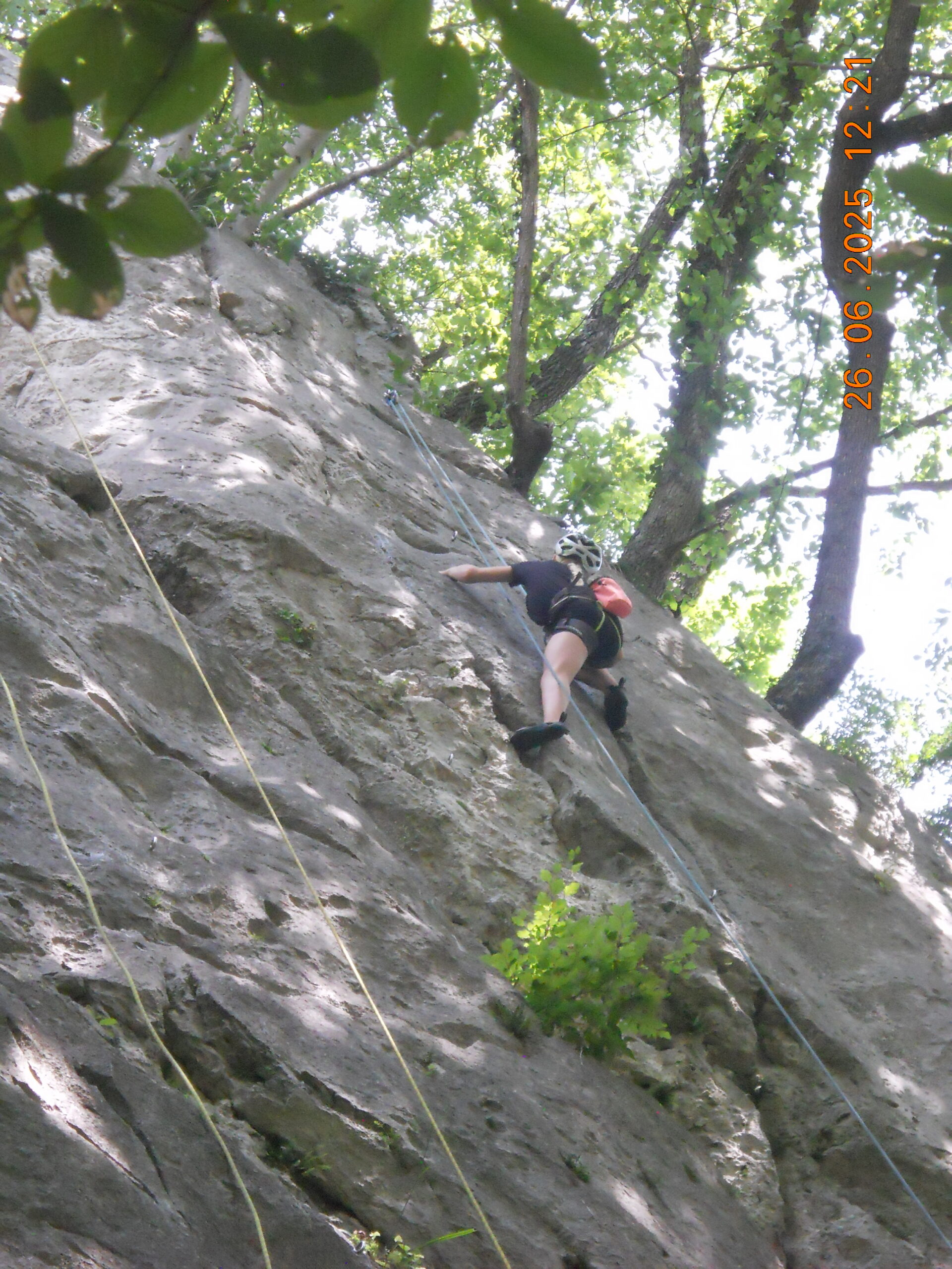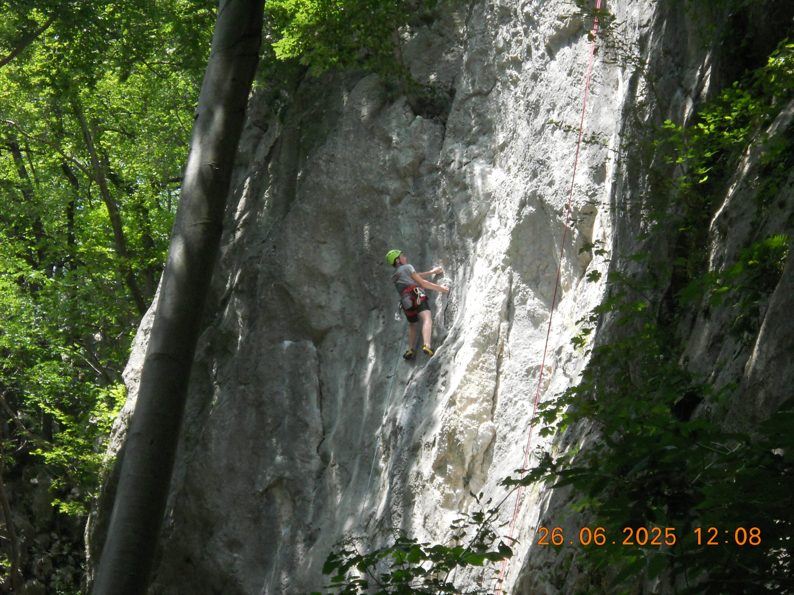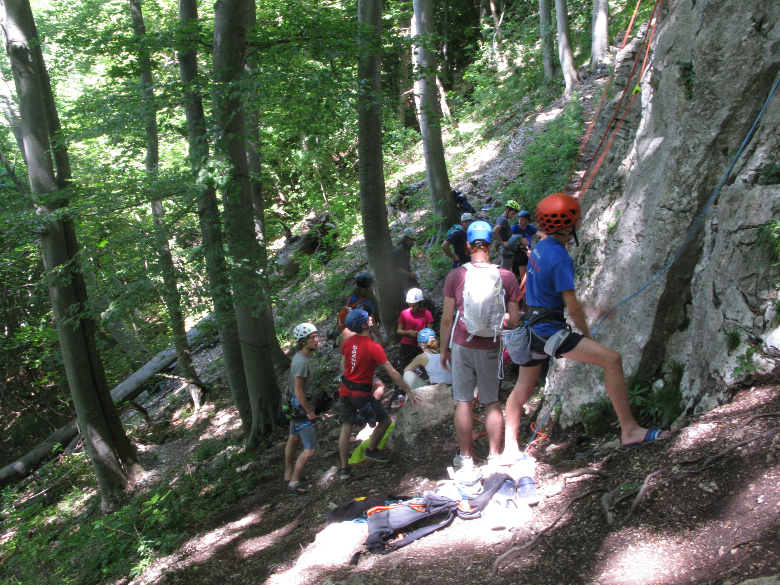 Tečajniki so ponovili manevre prevezovanja in izpenjanja kompletov ter preplezali veliko smeri v skali, pod bujnim očesom glavnega trenerja Simona. Za dodatek pa so videli tudi manevra vzpona in spusta po vrvi.