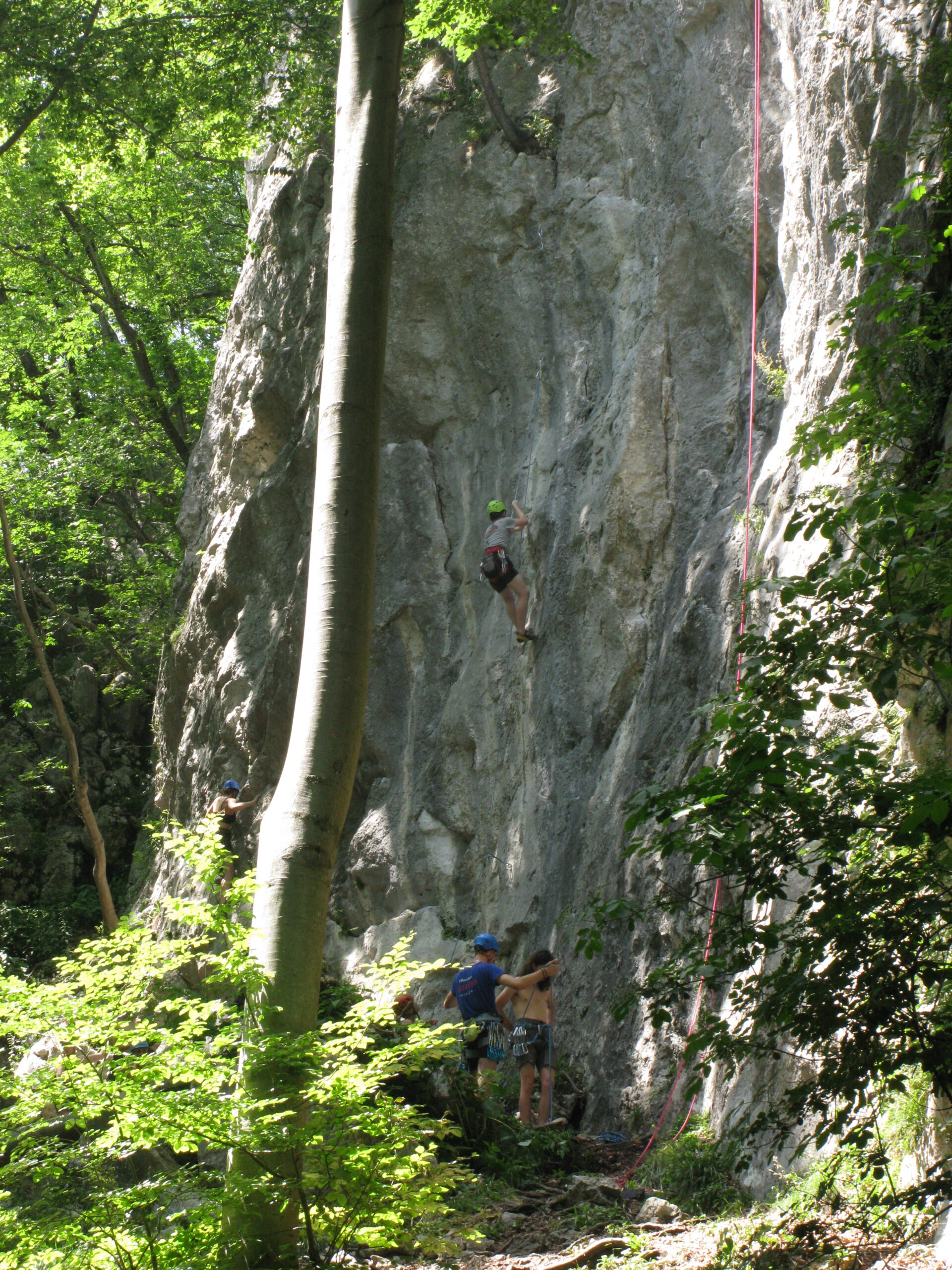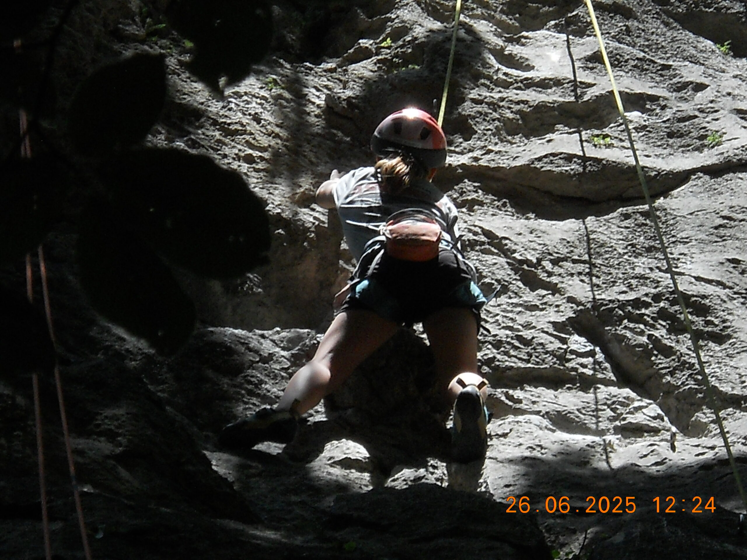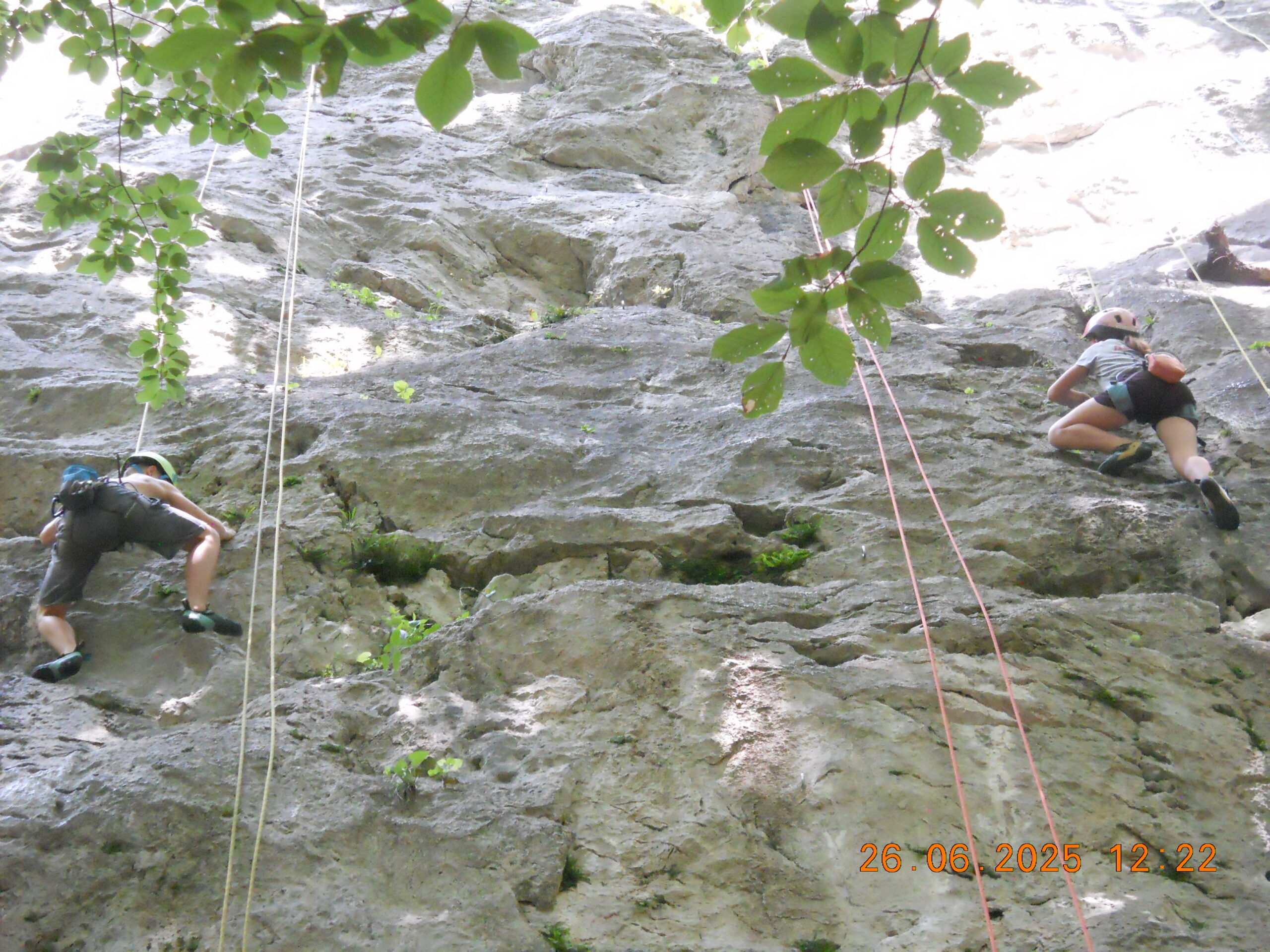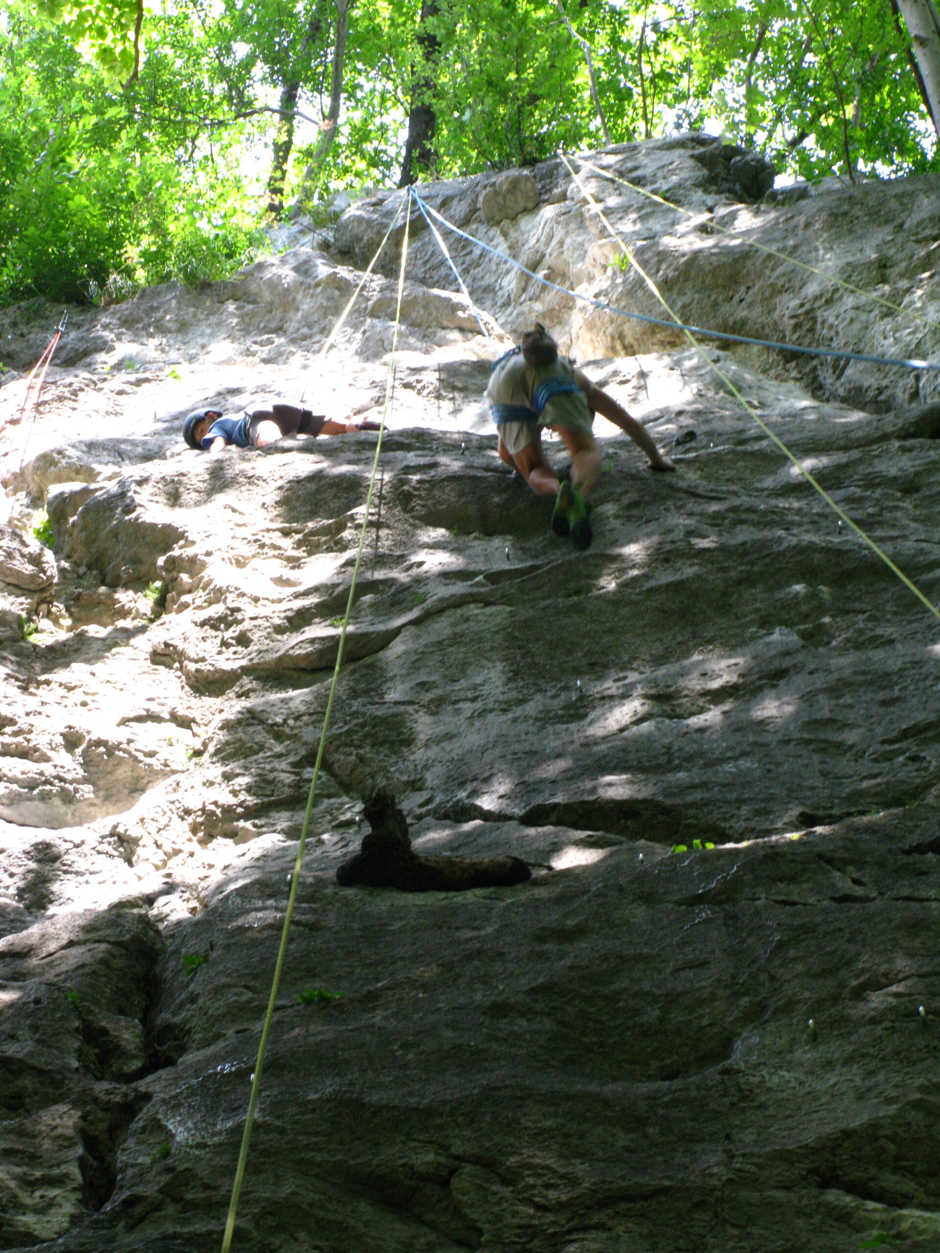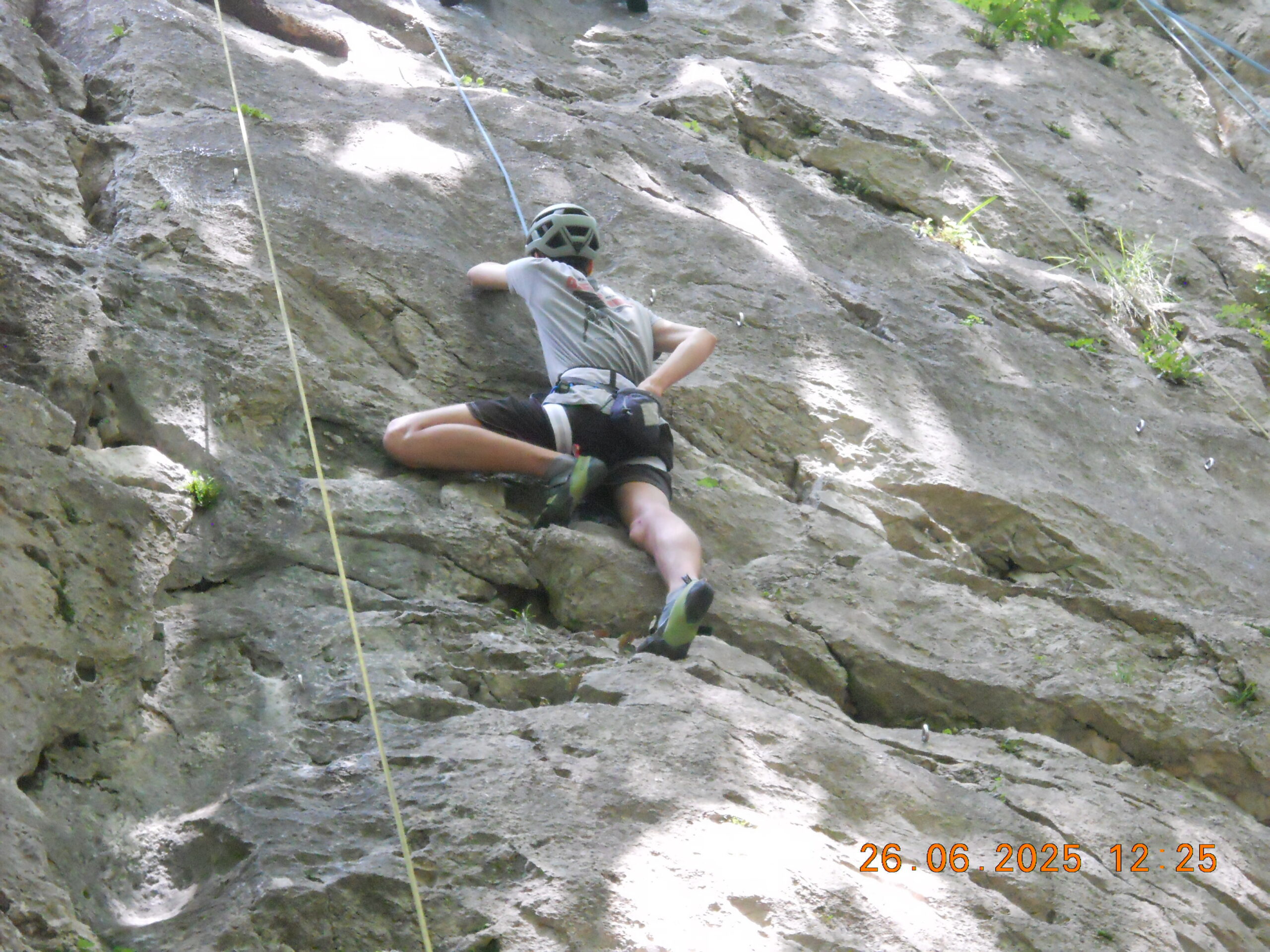 Tečajniki so ponovili manevre prevezovanja in izpenjanja kompletov ter preplezali veliko smeri v skali, pod bujnim očesom glavnega trenerja Simona. Za dodatek pa so videli tudi manevra vzpona in spusta po vrvi.