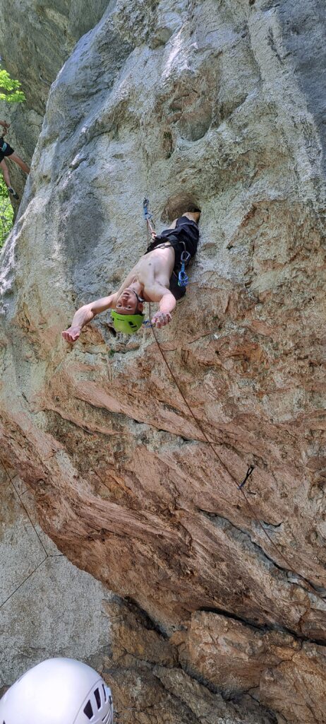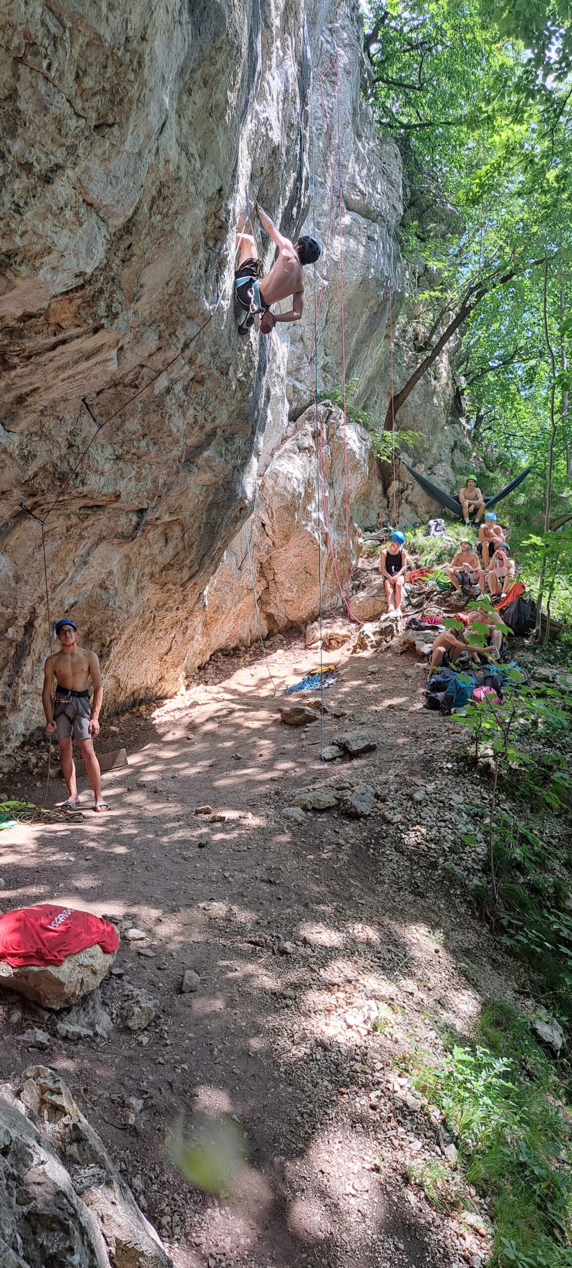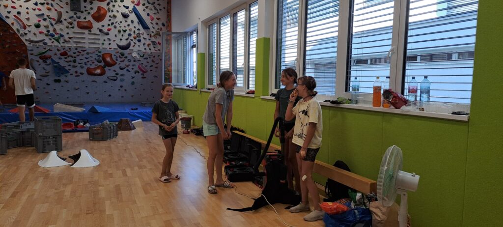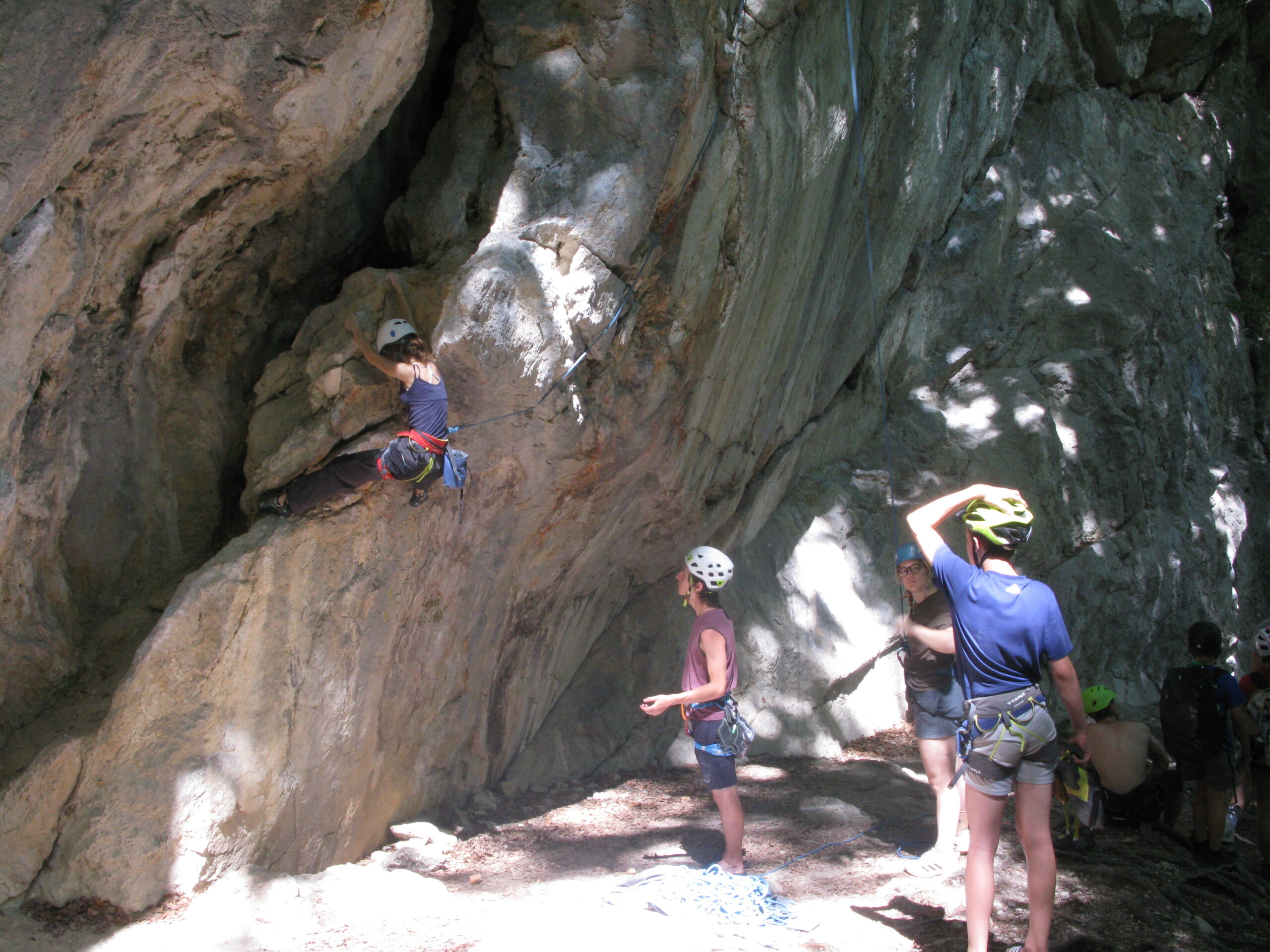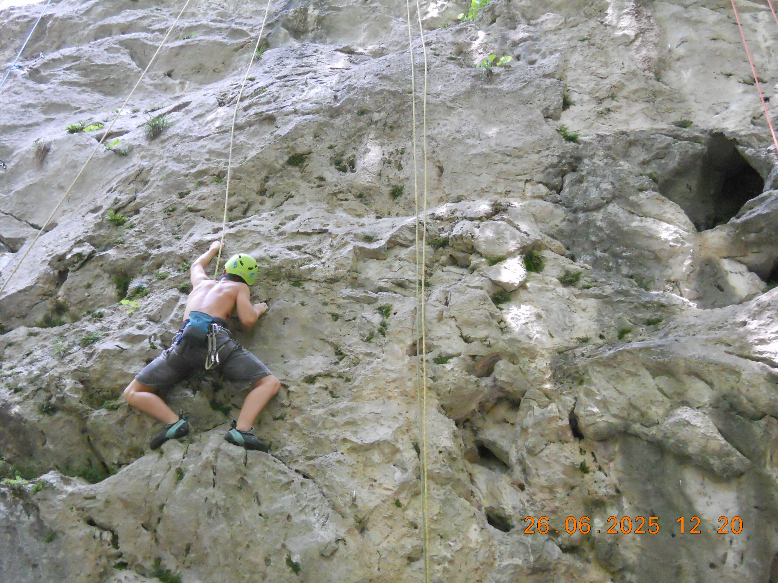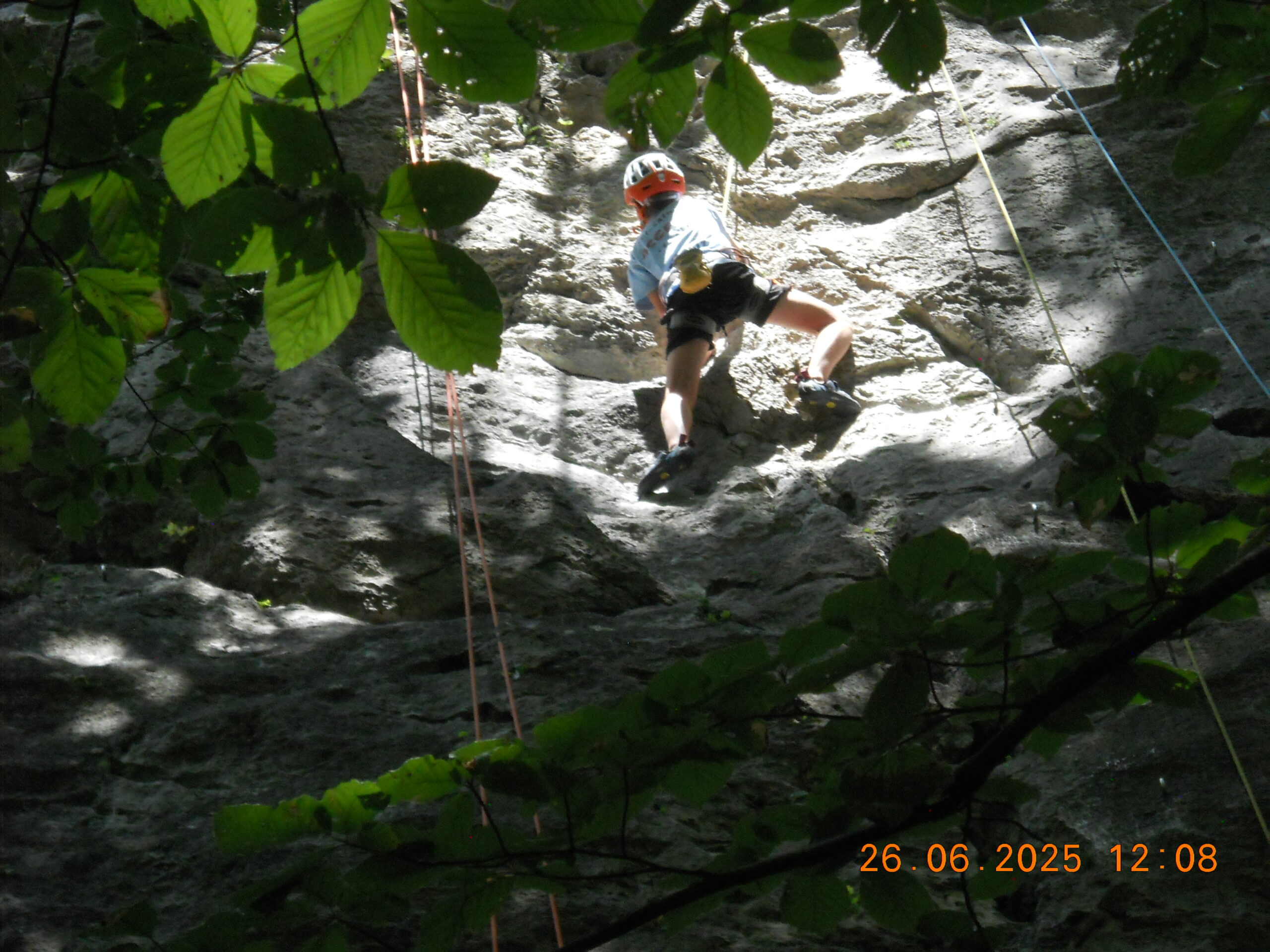 Tečajniki so ponovili manevre prevezovanja in izpenjanja kompletov ter preplezali veliko smeri v skali, pod bujnim očesom glavnega trenerja Simona. Za dodatek pa so videli tudi manevra vzpona in spusta po vrvi.