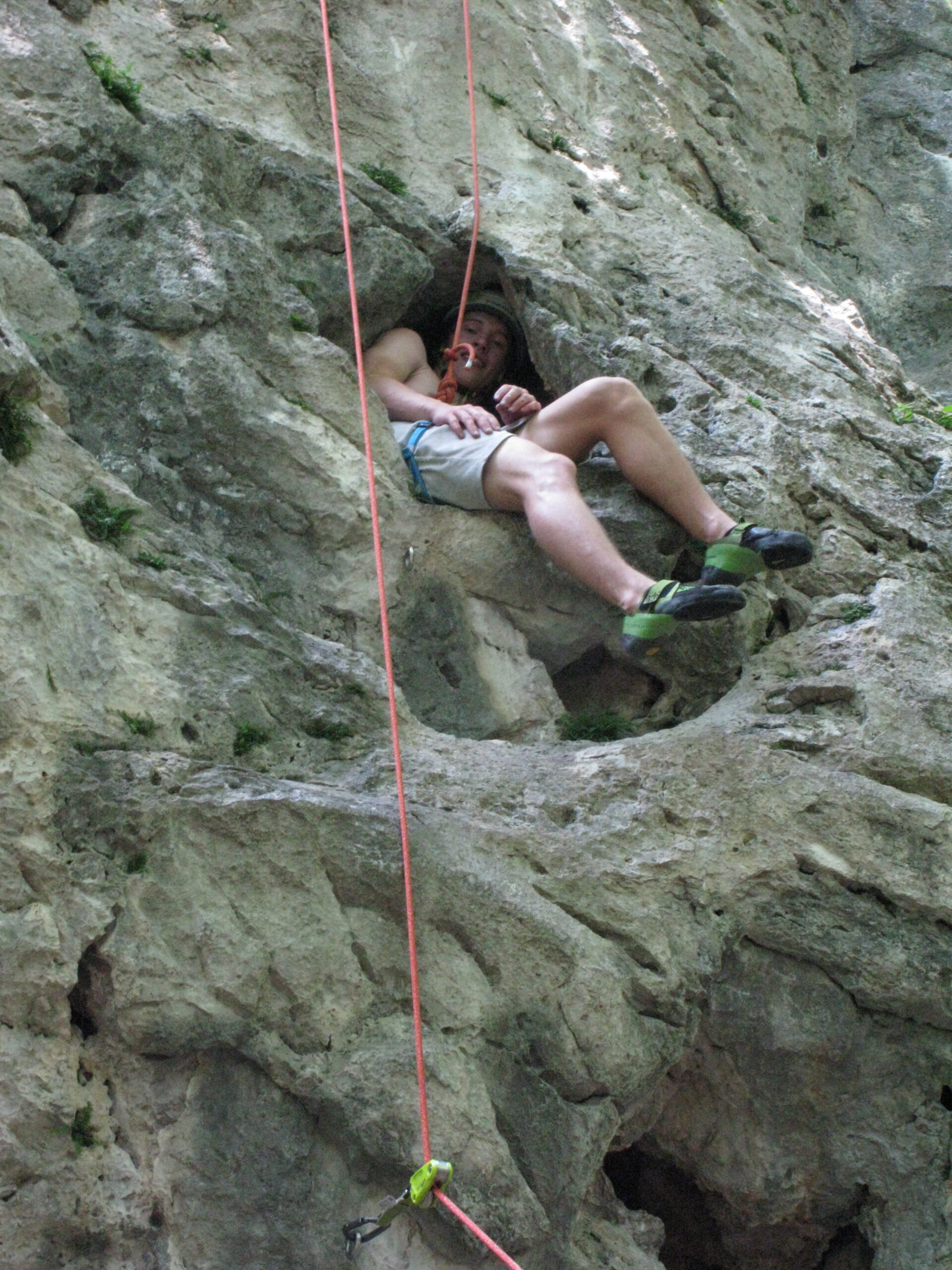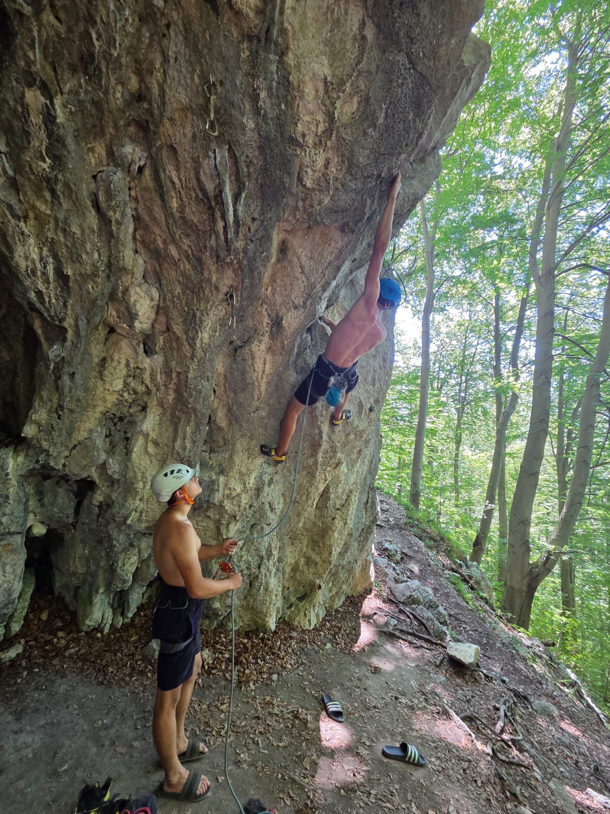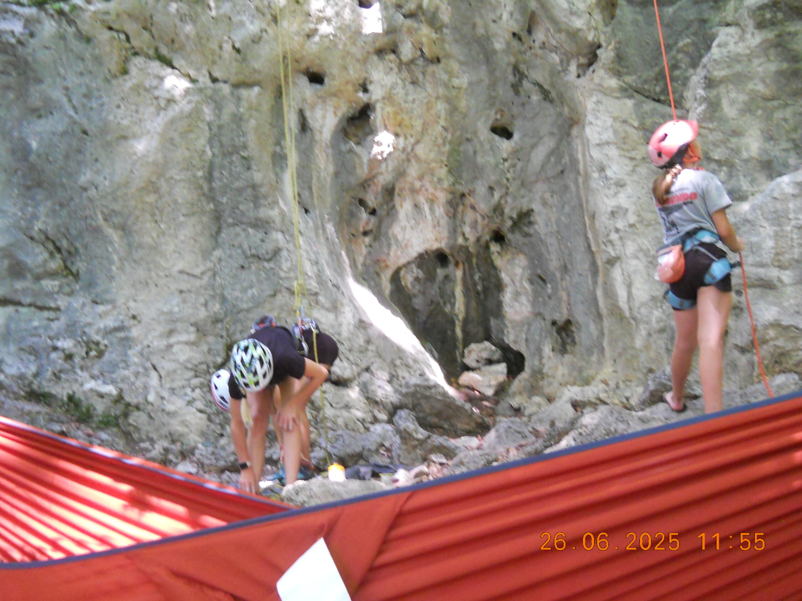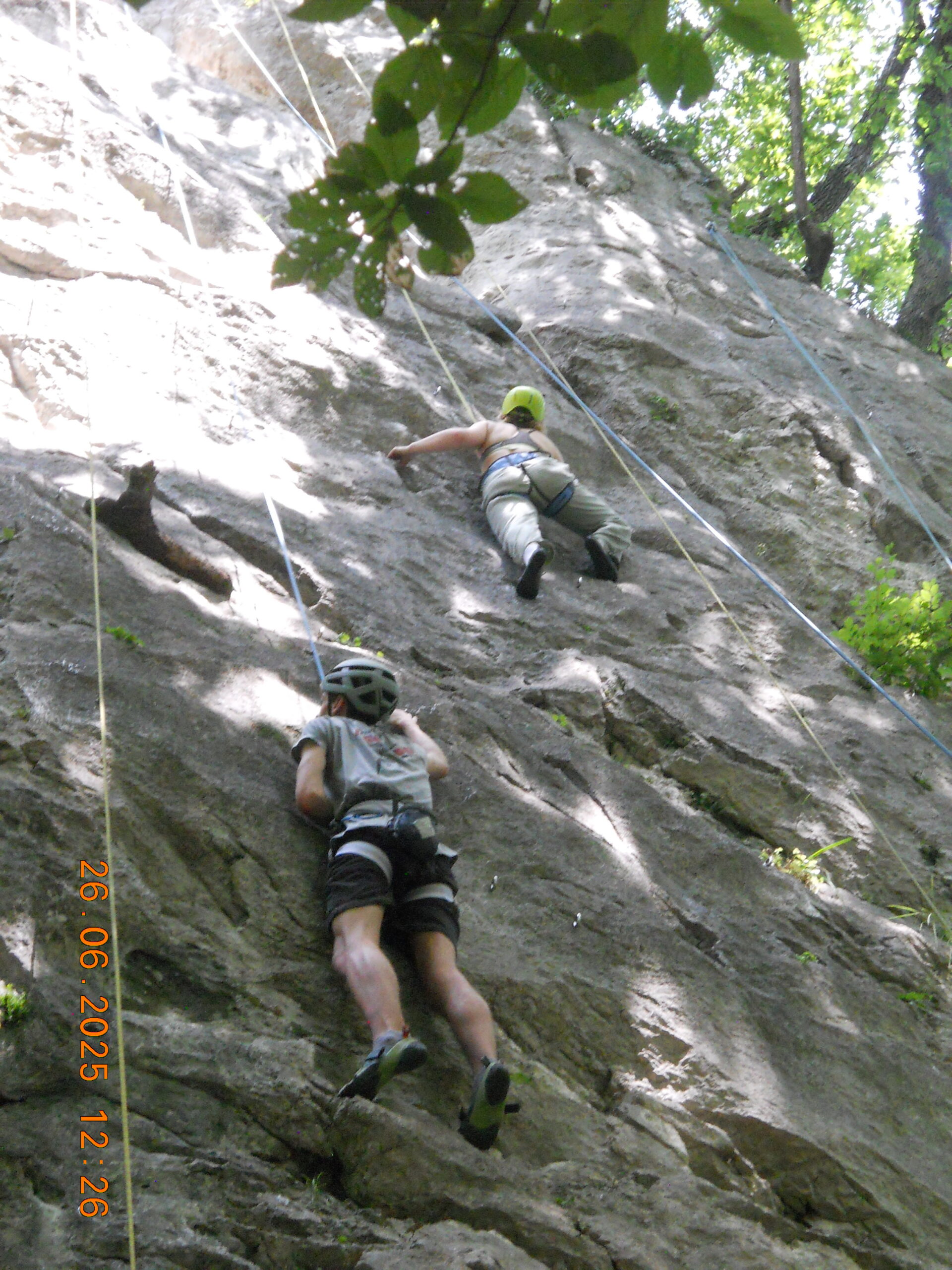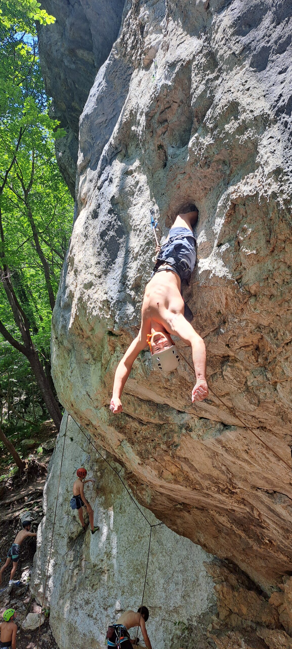 Tečajniki so ponovili manevre prevezovanja in izpenjanja kompletov ter preplezali veliko smeri v skali, pod bujnim očesom glavnega trenerja Simona. Za dodatek pa so videli tudi manevra vzpona in spusta po vrvi.