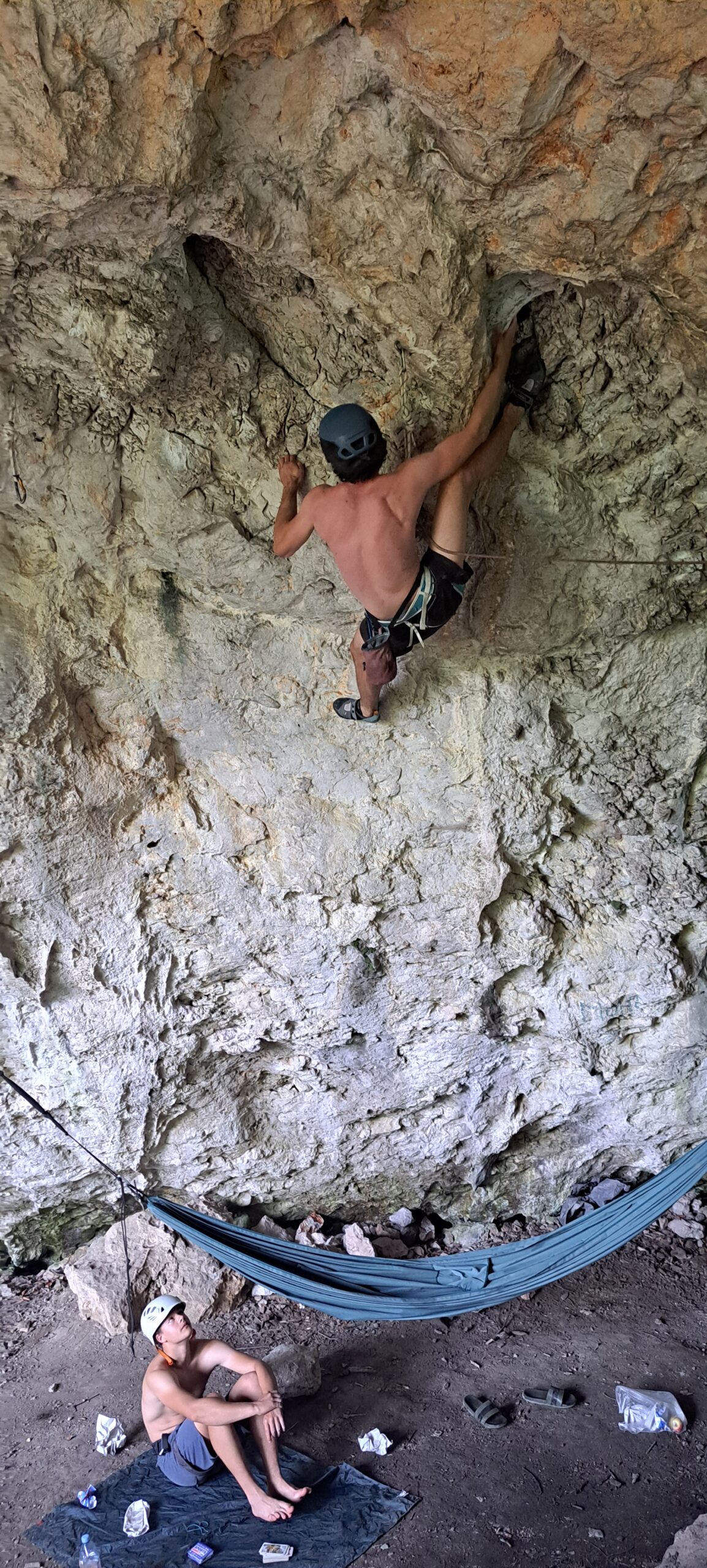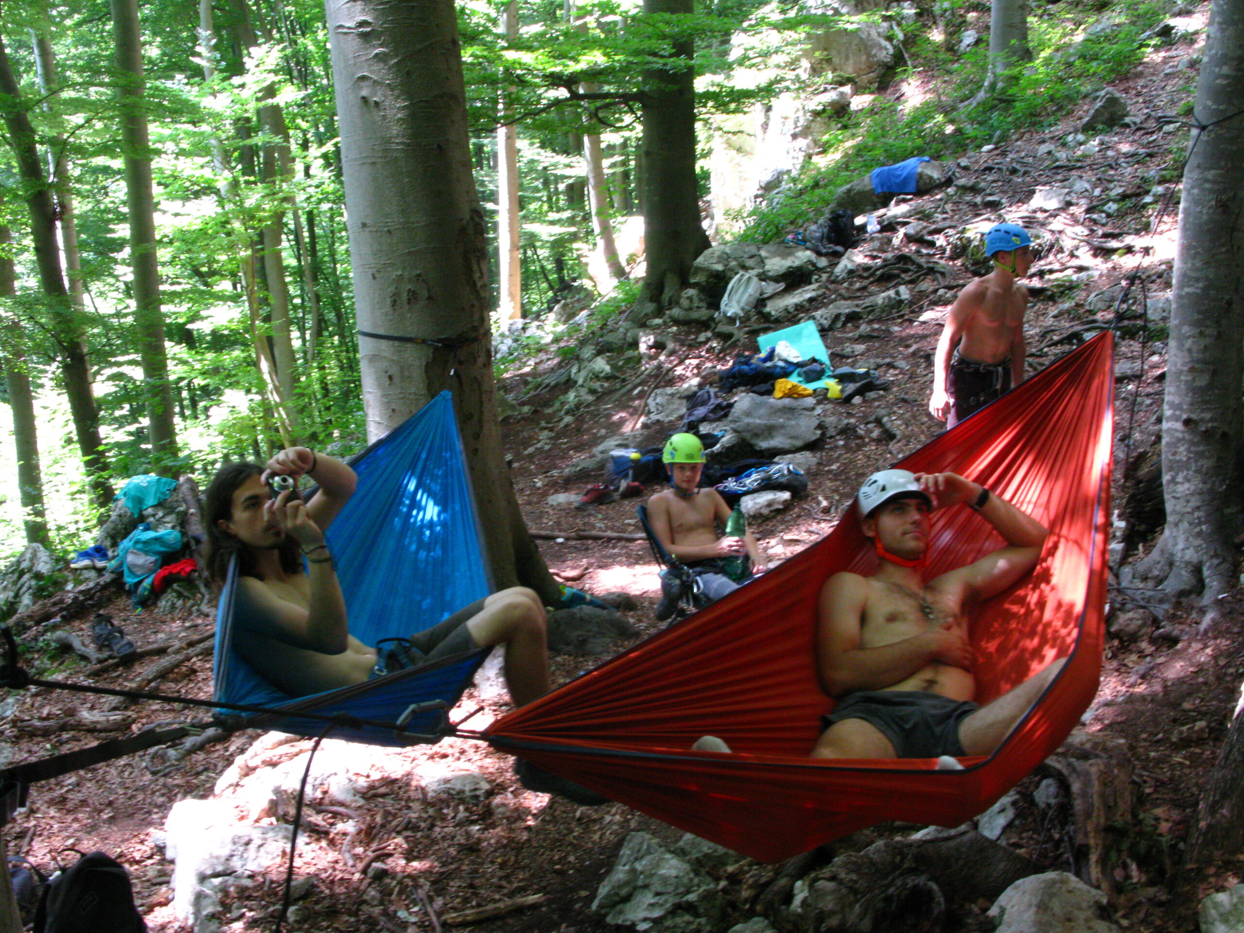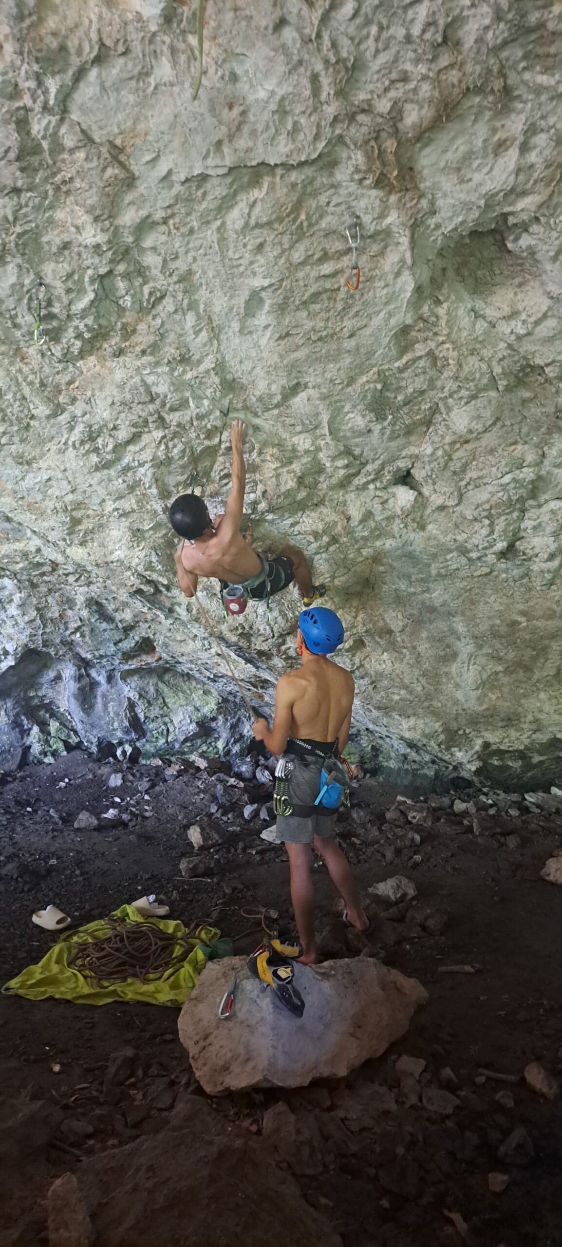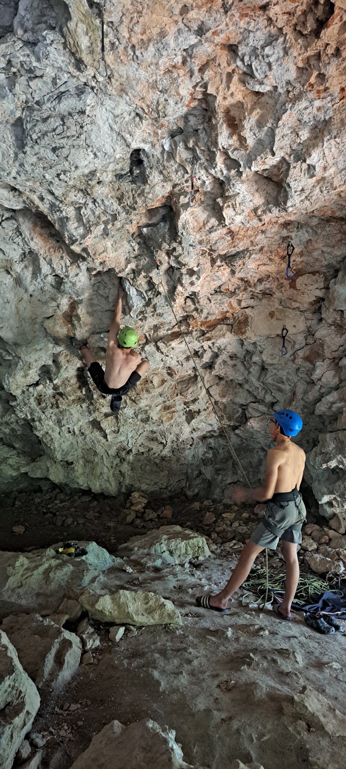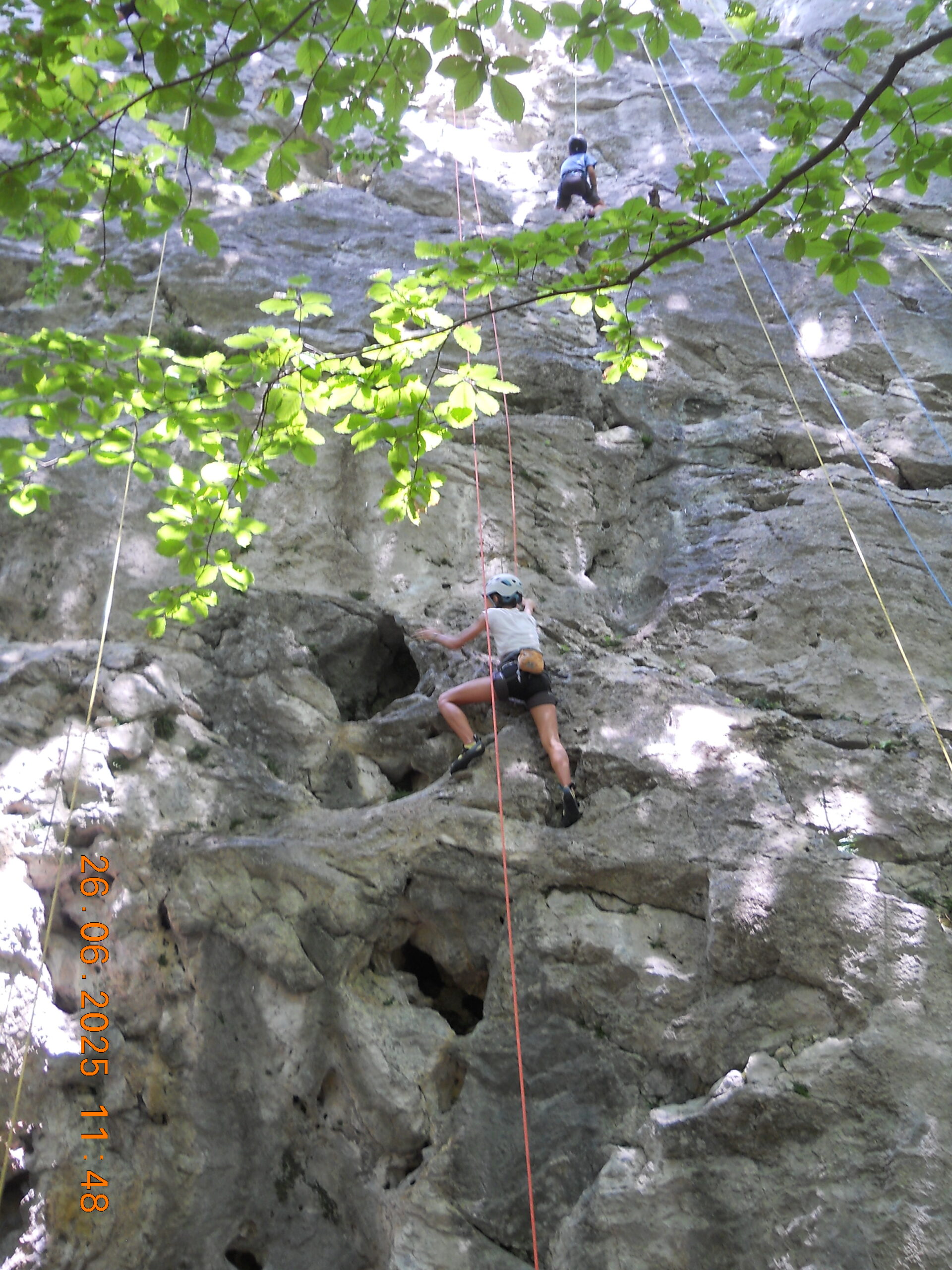 Tečajniki so ponovili manevre prevezovanja in izpenjanja kompletov ter preplezali veliko smeri v skali, pod bujnim očesom glavnega trenerja Simona. Za dodatek pa so videli tudi manevra vzpona in spusta po vrvi.