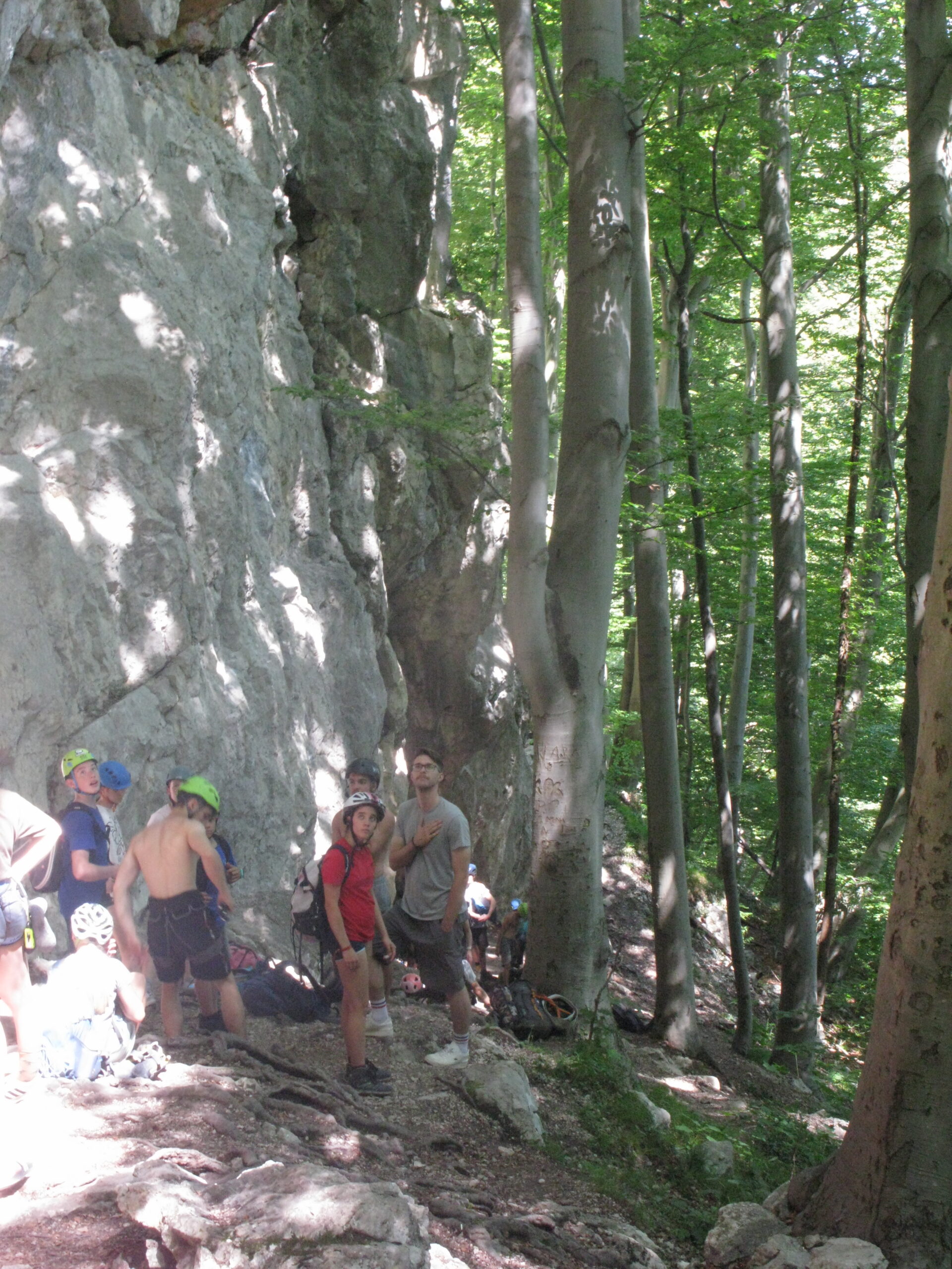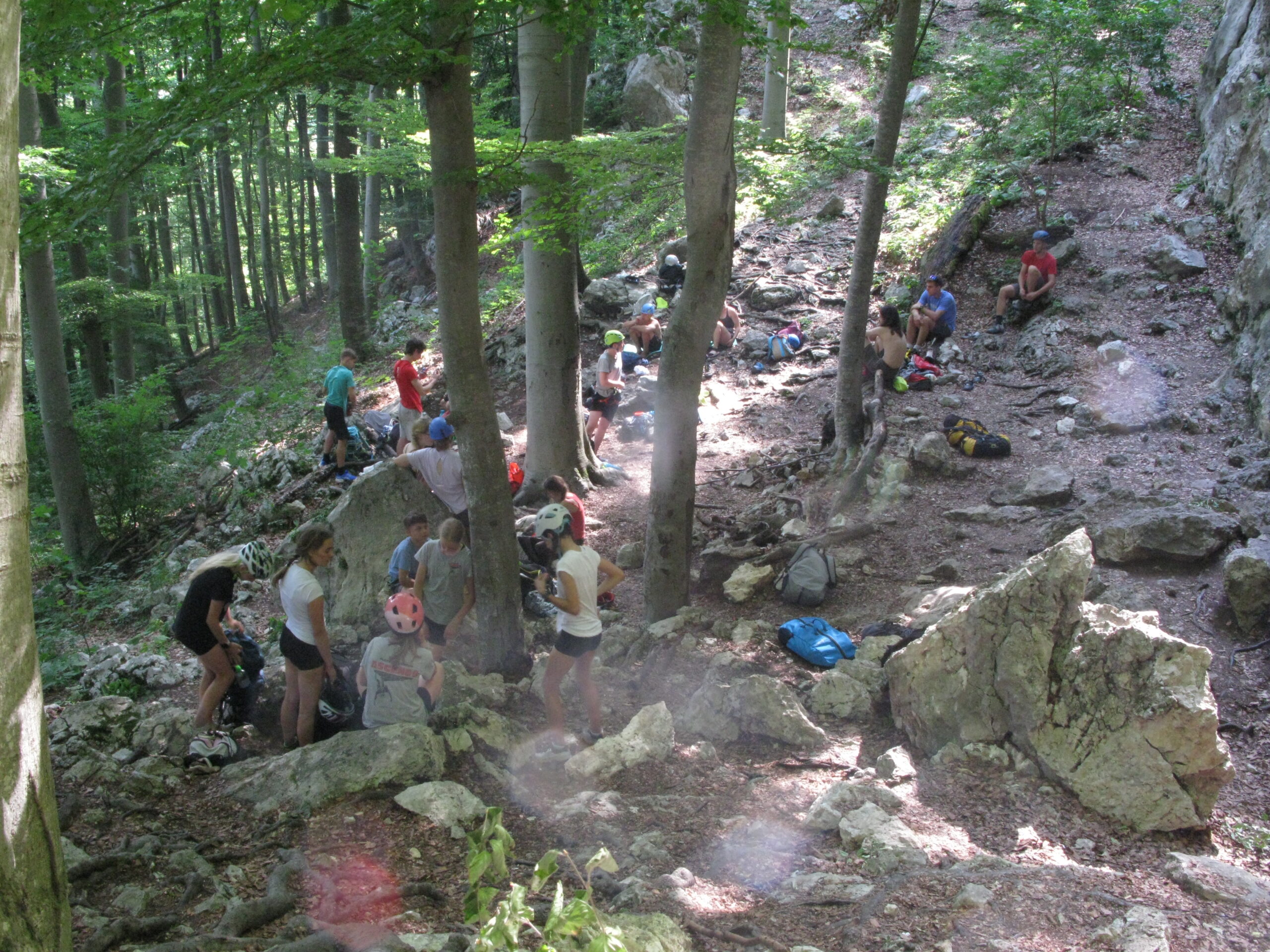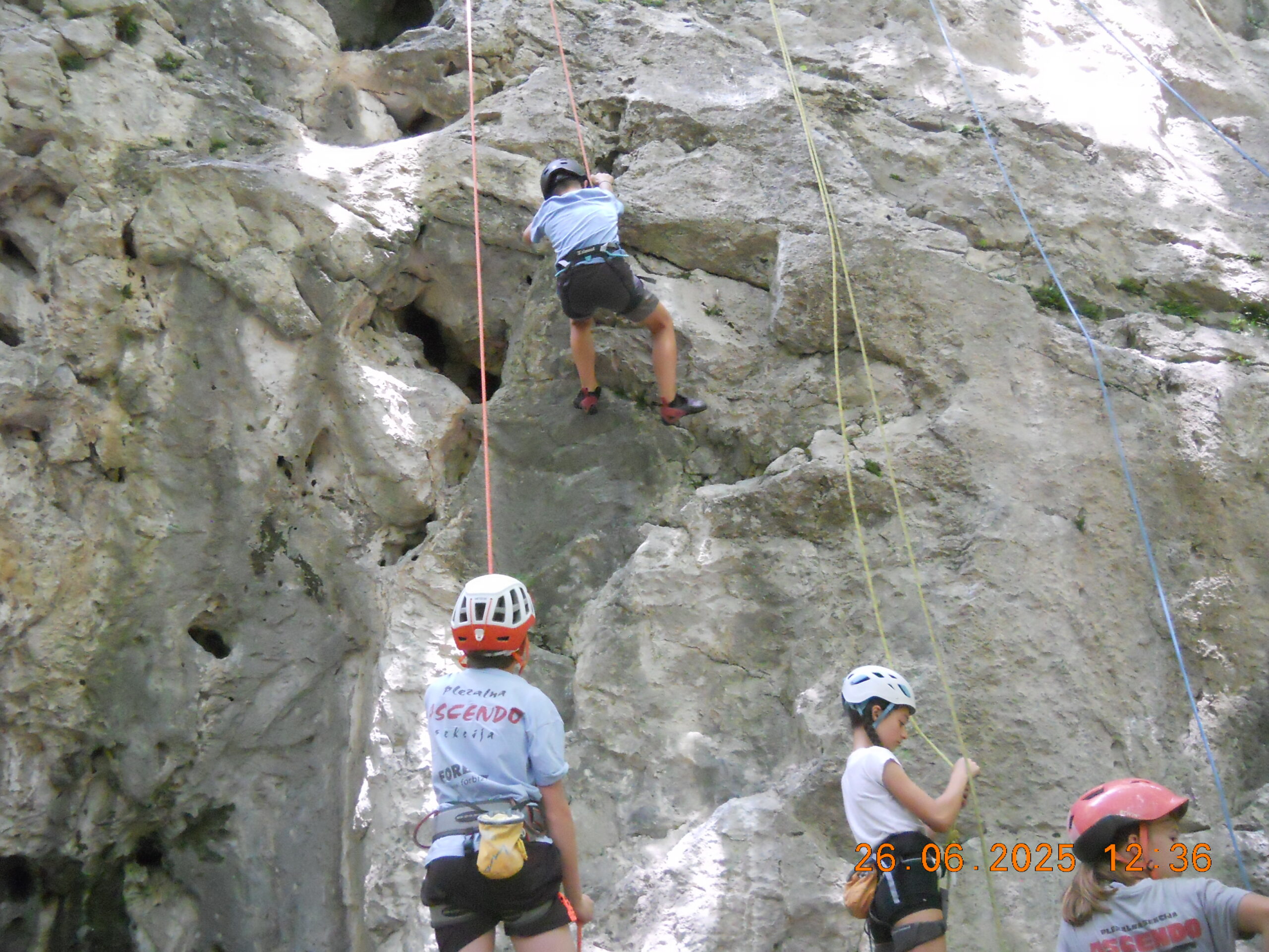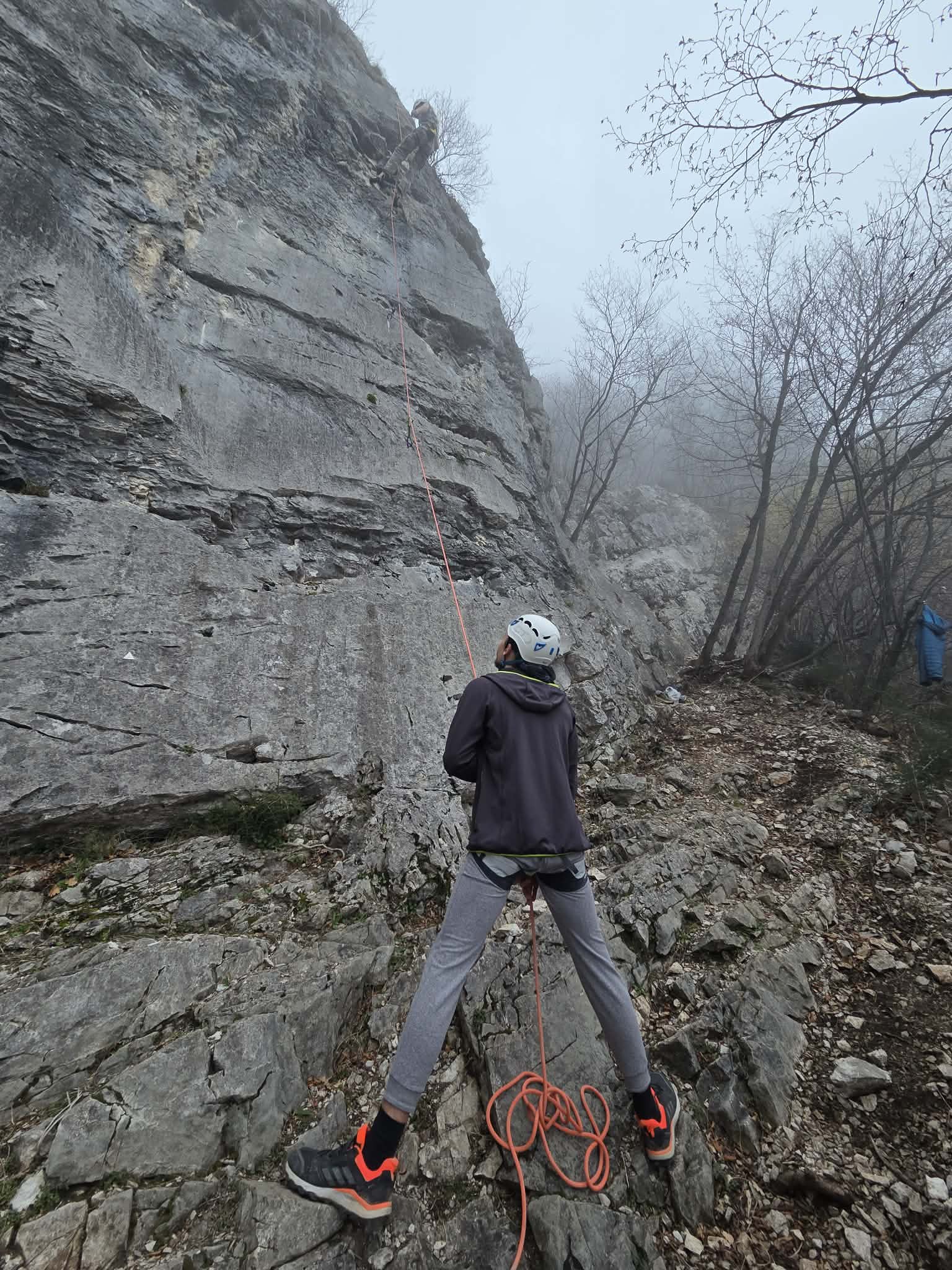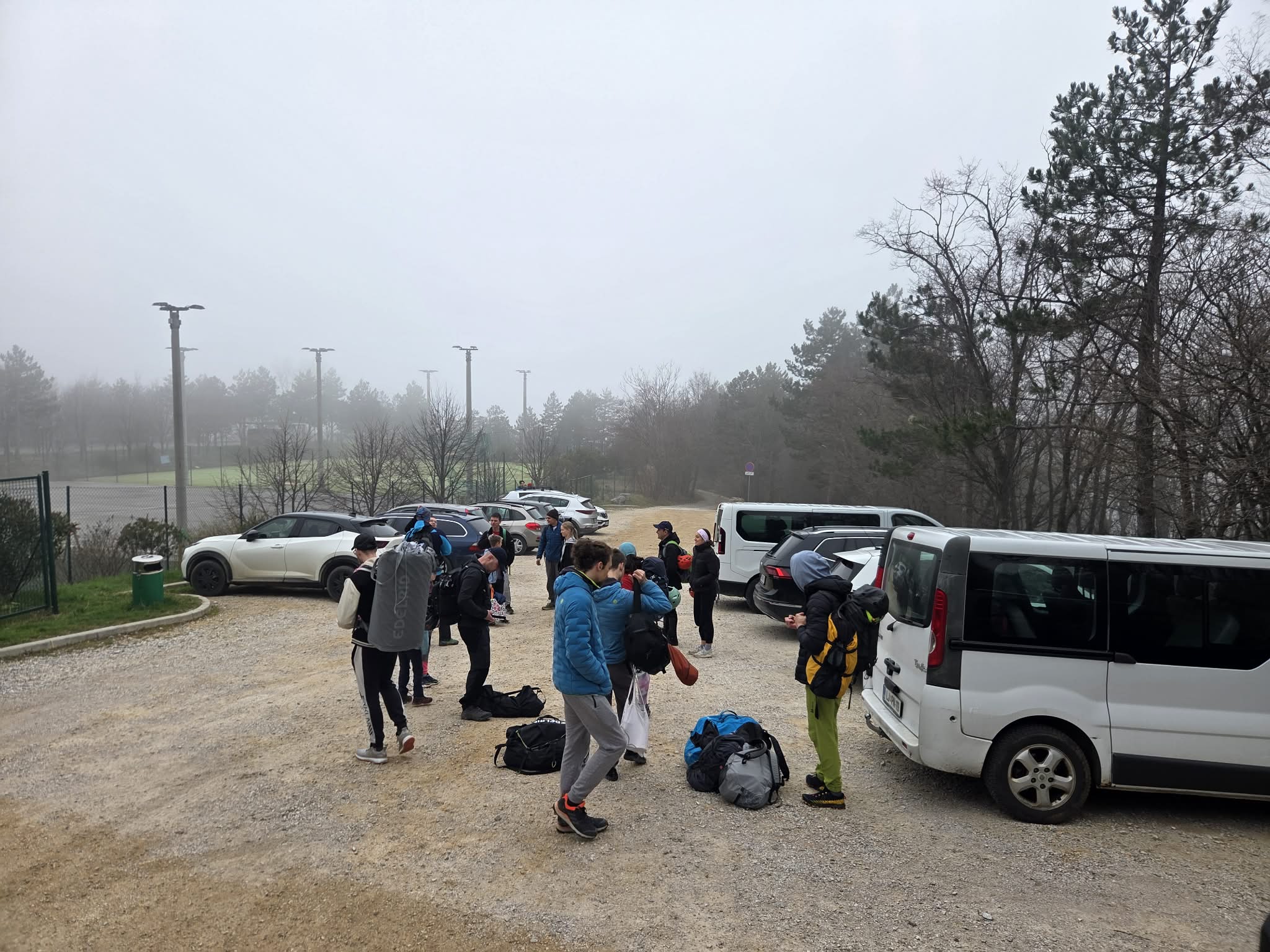Ob zgodnjih jutranjih urah s nas je iz Grosuplja odpravilo 6 spremljevalcev in tečajniki z družinami. Meglena primorska pa nas dolgo ni spustila iz svojega pokrova – plezali smo v mrzlem in čakali, da se prikaže sonce in nas pogreje. Ob pol 13ih je to res prišlo v svoji polni moči in nam hkrati odprlo pogled na dolino, ki se je iz vrha smeri razprostirala pod nami.