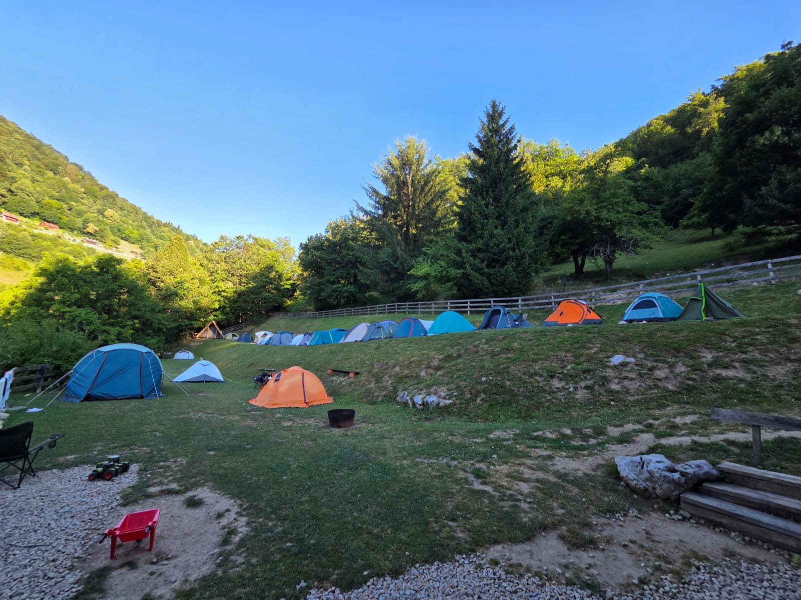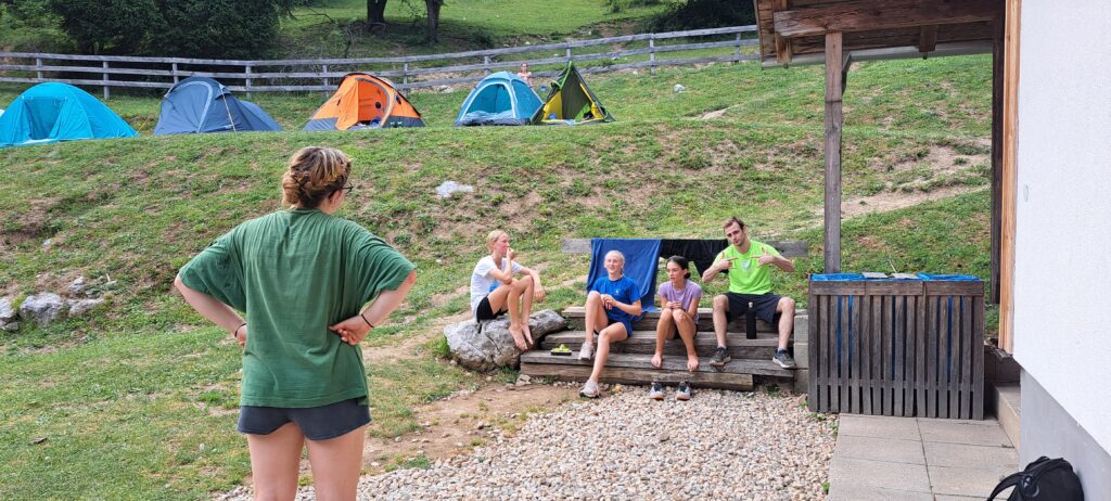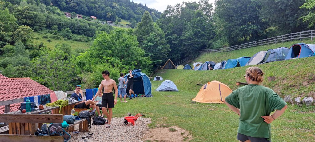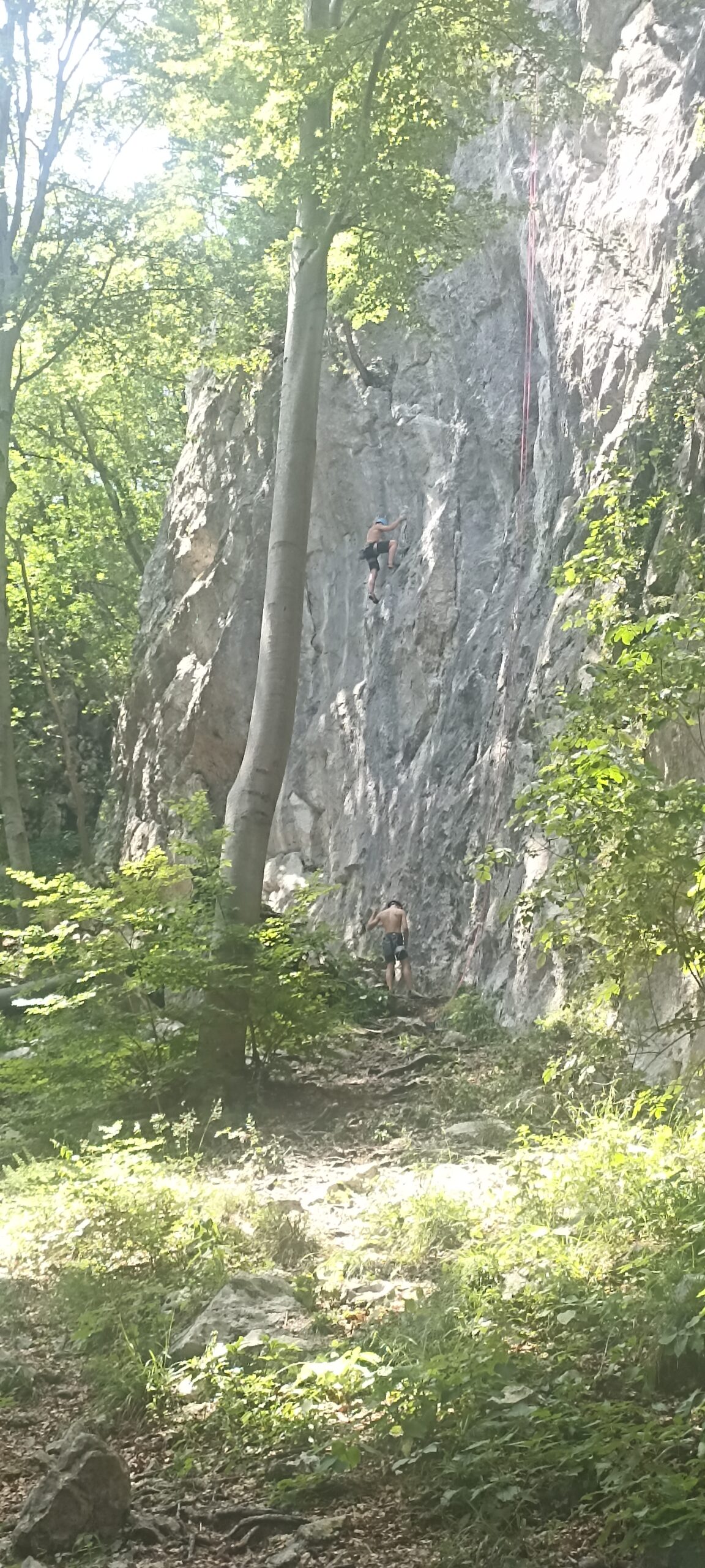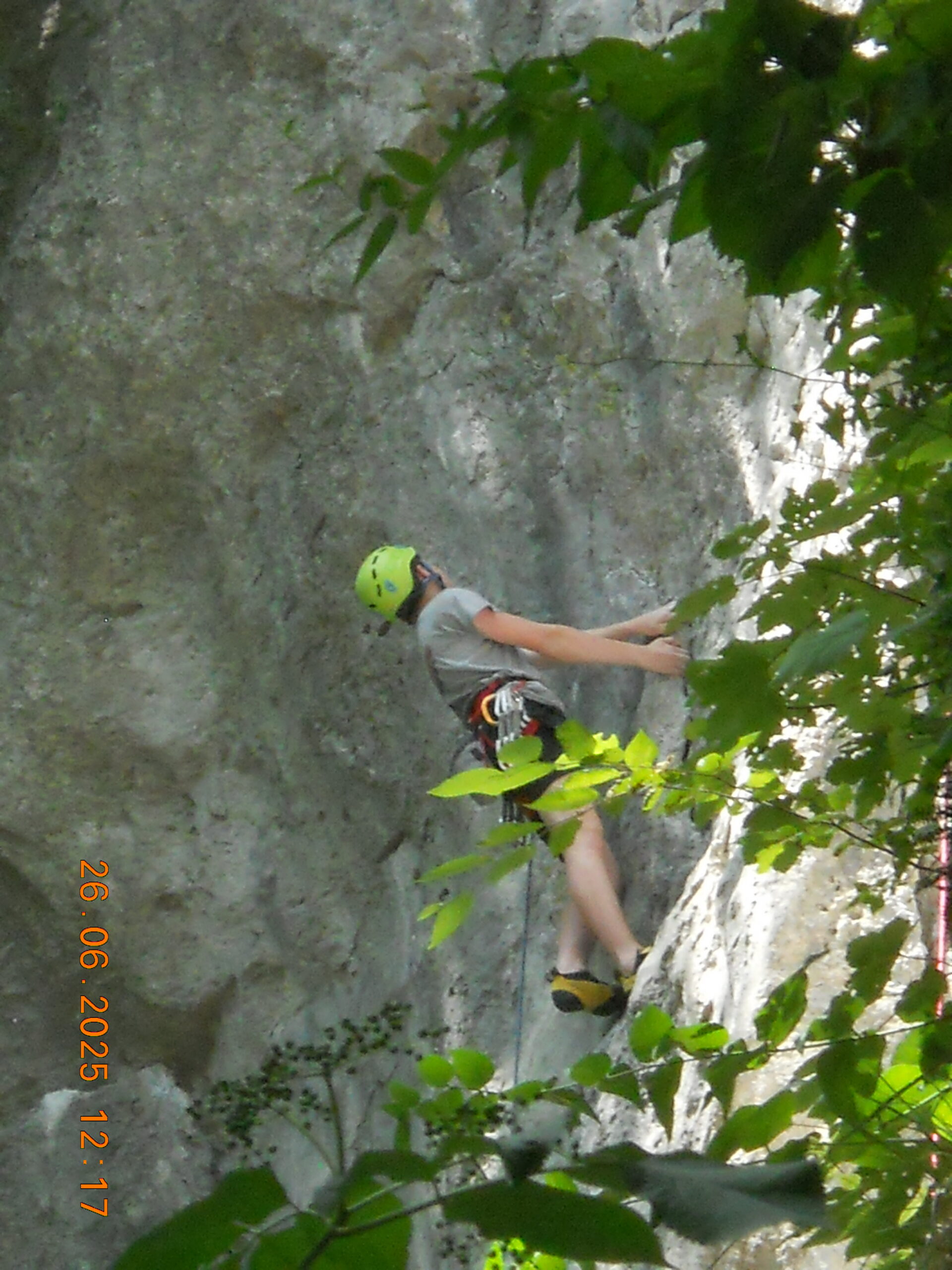 Ob zgodnjih jutranjih urah s nas je iz Grosuplja odpravilo 6 spremljevalcev in tečajniki z družinami. Meglena primorska pa nas dolgo ni spustila iz svojega pokrova – plezali smo v mrzlem in čakali, da se prikaže sonce in nas pogreje. Ob pol 13ih je to res prišlo v svoji polni moči in nam hkrati odprlo pogled na dolino, ki se je iz vrha smeri razprostirala pod nami.