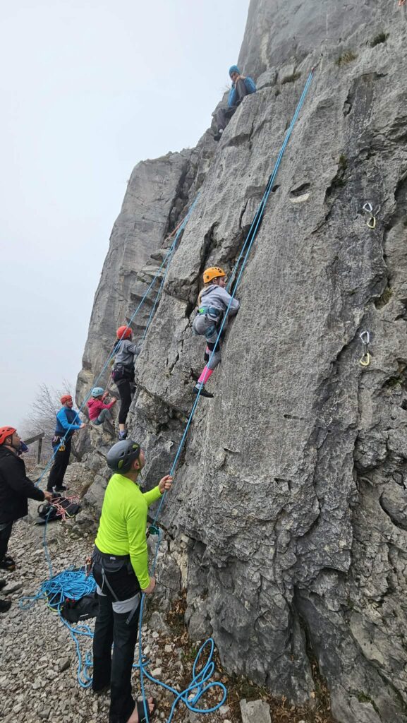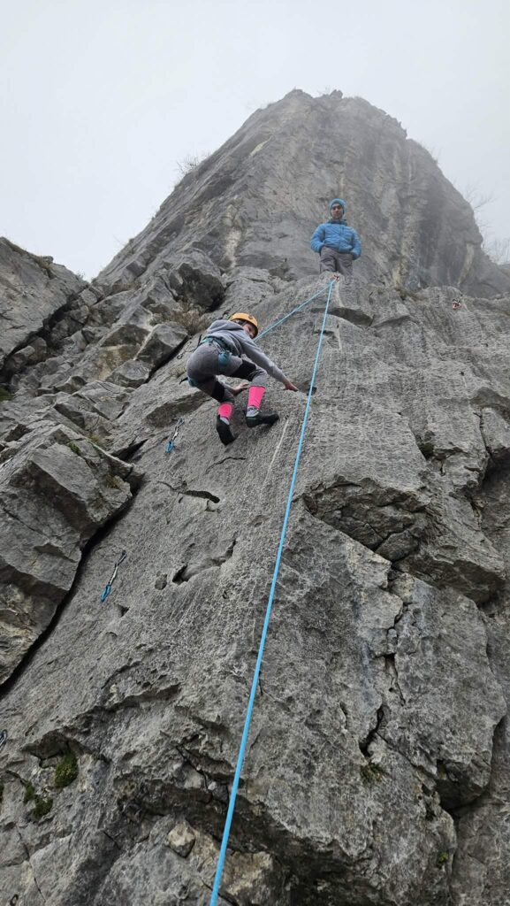 V nedeljo, 1. 3. 2026 smo se s tečajniki za naziv Pripravnik športnega plezanja odpejali v plezališče, kjer smo za konec njihove poti Začetne šole športnega plezanja poplezali v sektorju Pikapolonica.